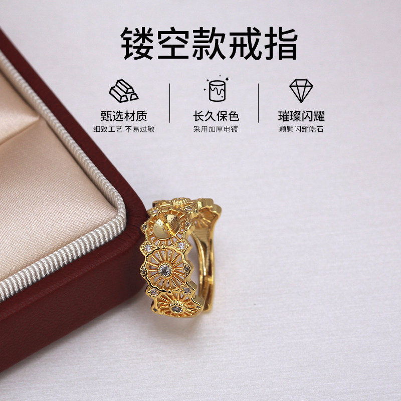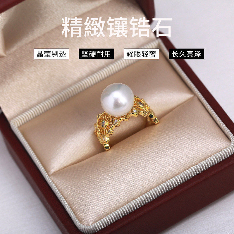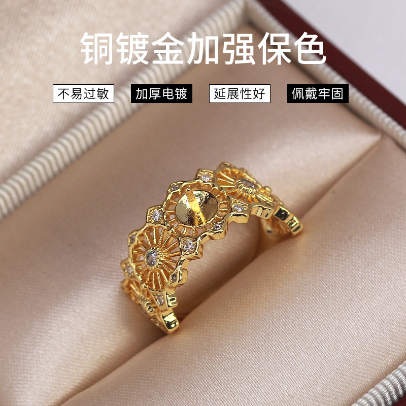 DIY珍珠配件新款铜镀金精致镶锆复古宫廷风哥特风戒指空托