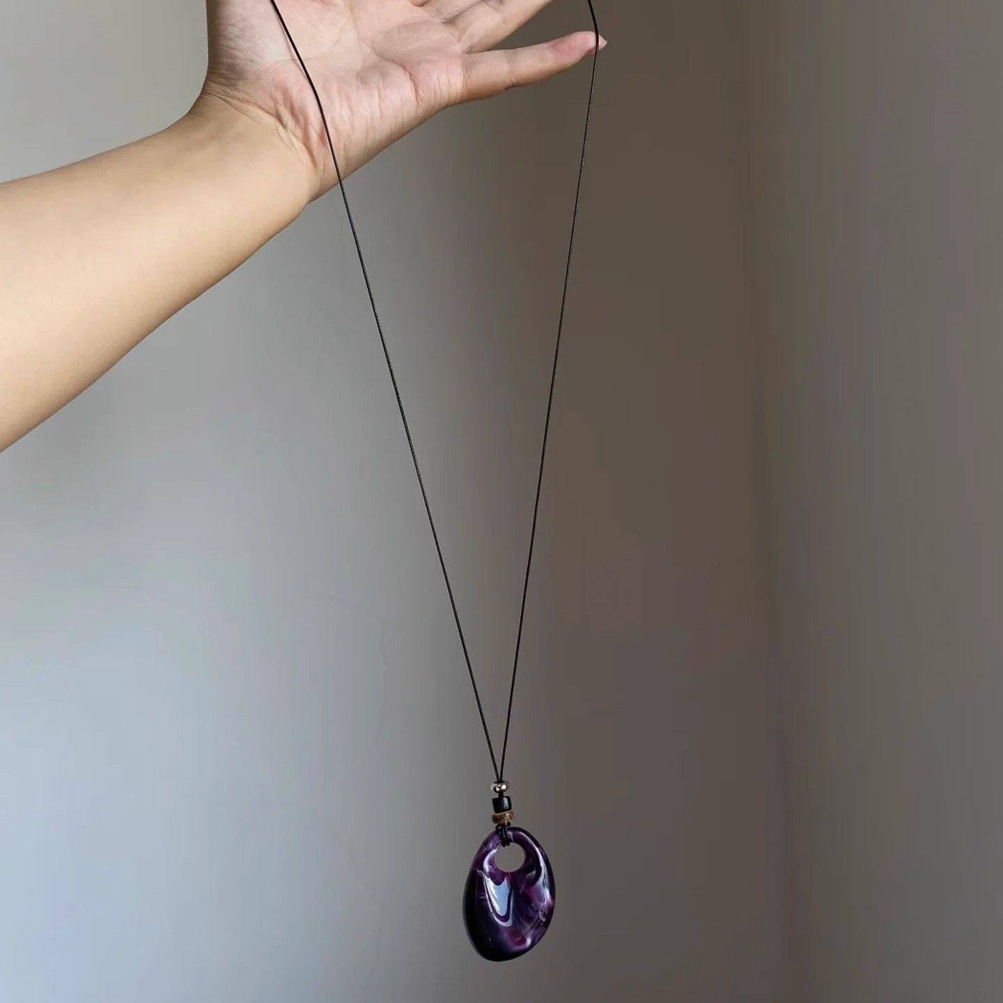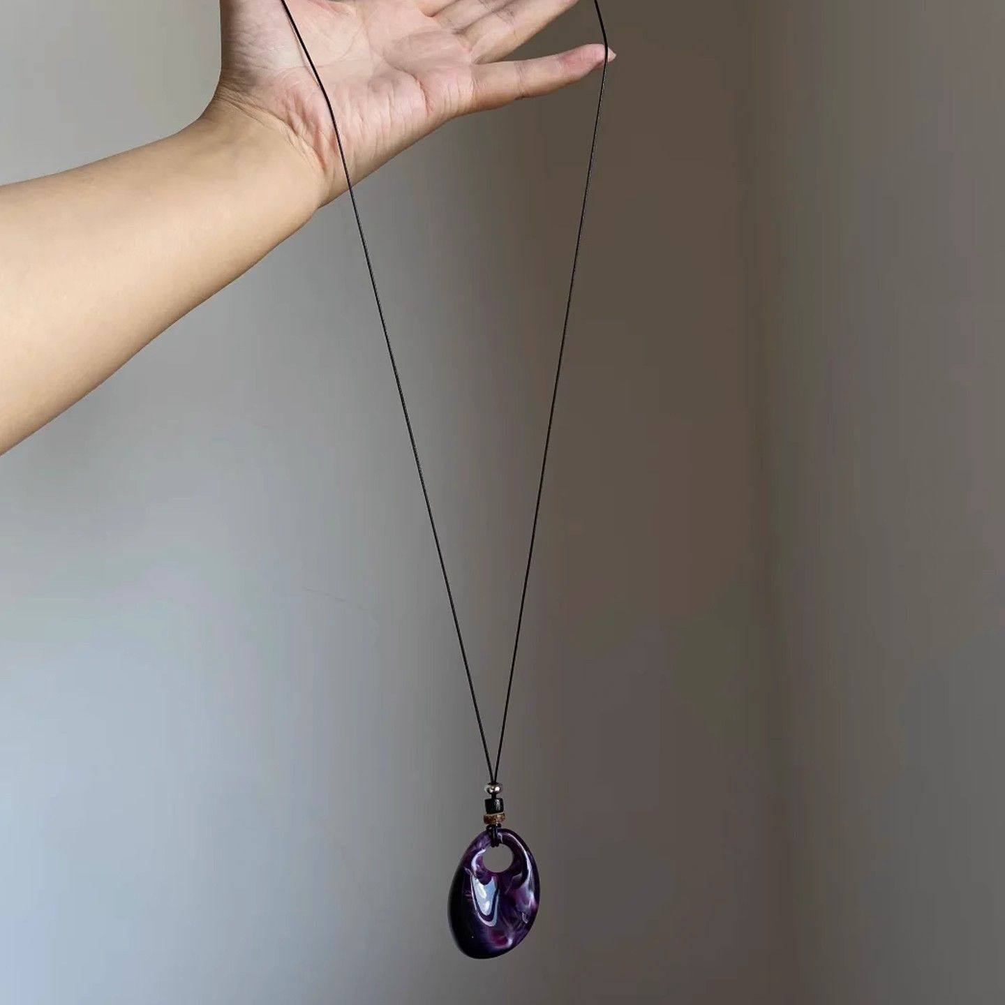 【晕染紫调】不规则镂空紫色吊坠项链女小众设计感毛衣链配饰独特