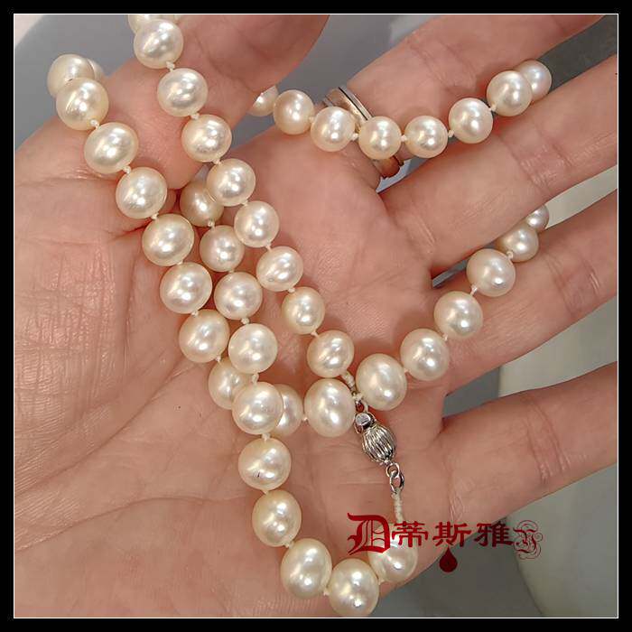 洪福奇宝天然淡水珍珠项链圆珠强光送人已用有机宝石过节礼物包邮
