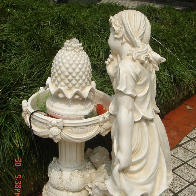欧式玻璃钢人物i雕塑艺术品客厅户外落地摆设可定制作女孩流水喷