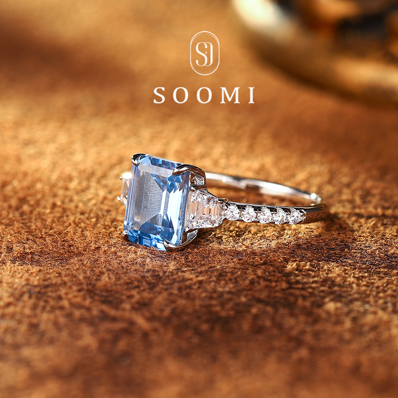 【SOOMI 玉玺】海蓝宝戒指2.2ct培育宝石925银公主方彩宝轻奢女戒