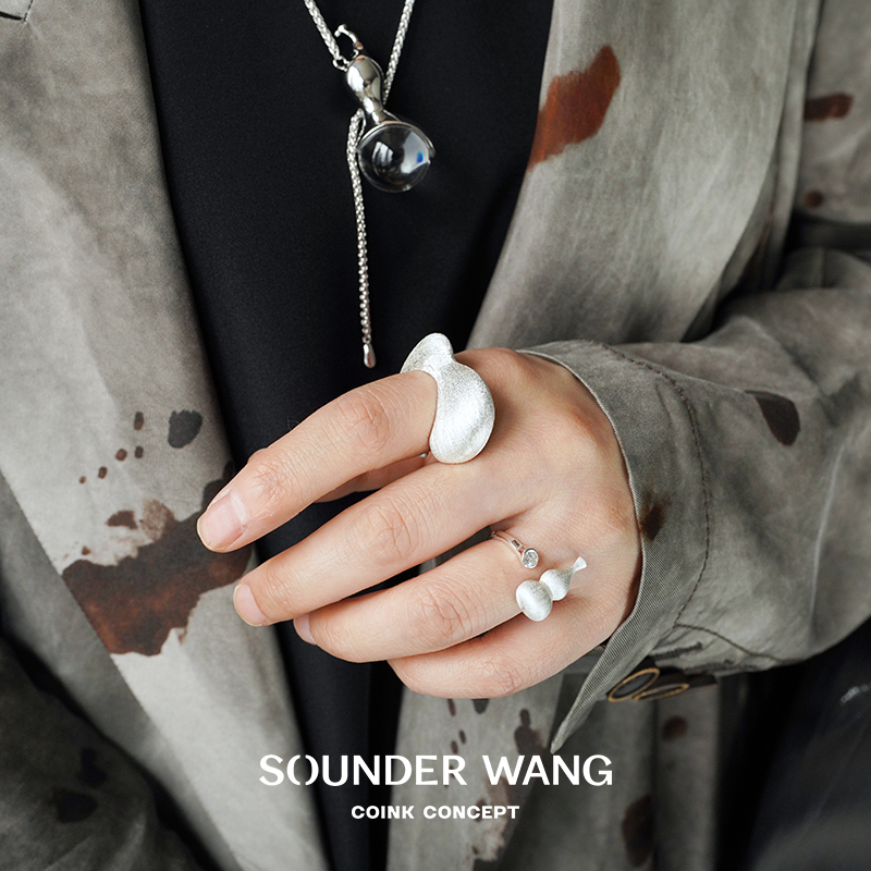 SOUNDER WANG 拉丝大葫芦戒指 原创设计师复古高级感小众1
