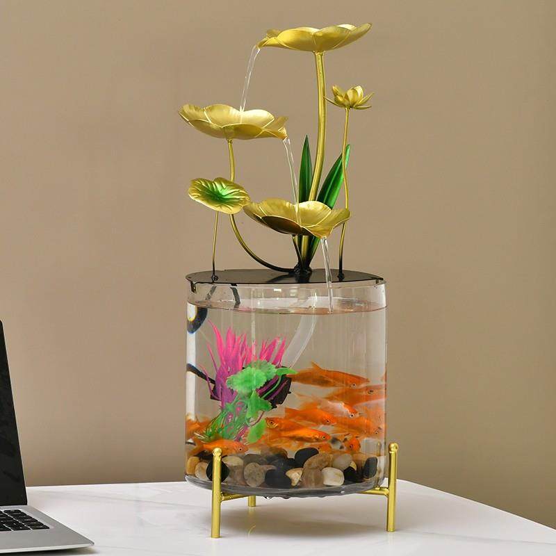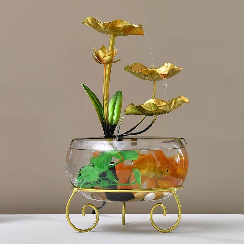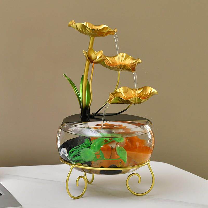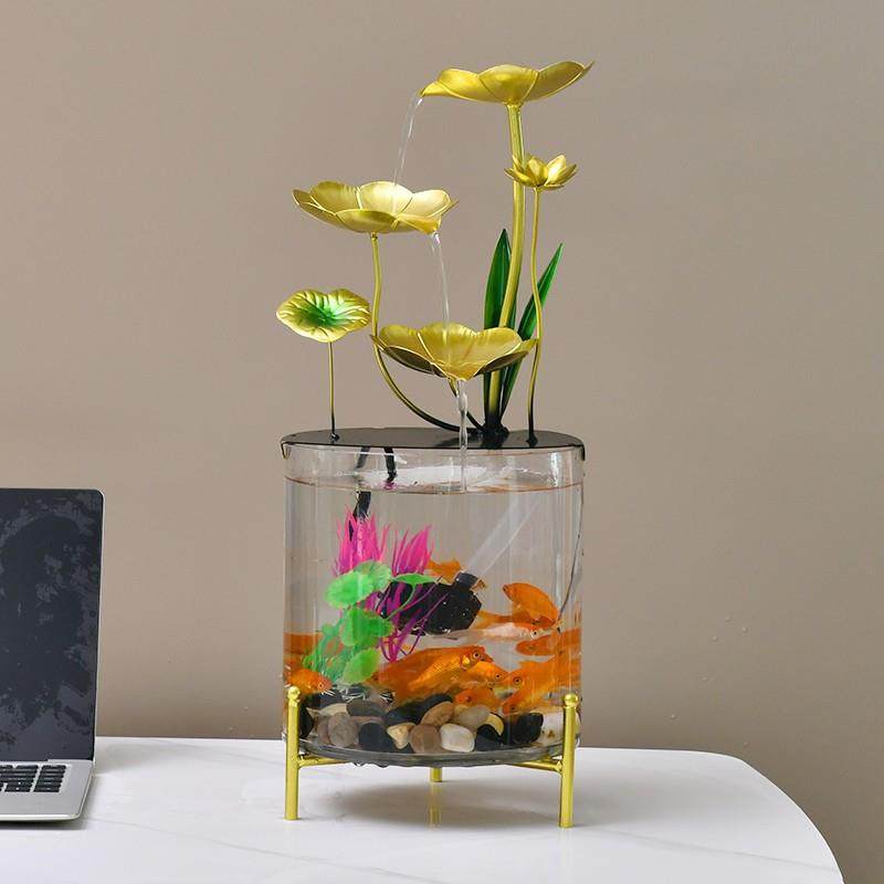 小型轻奢风鱼缸流水摆件招财家居客厅桌面创意水循环开业装饰礼品