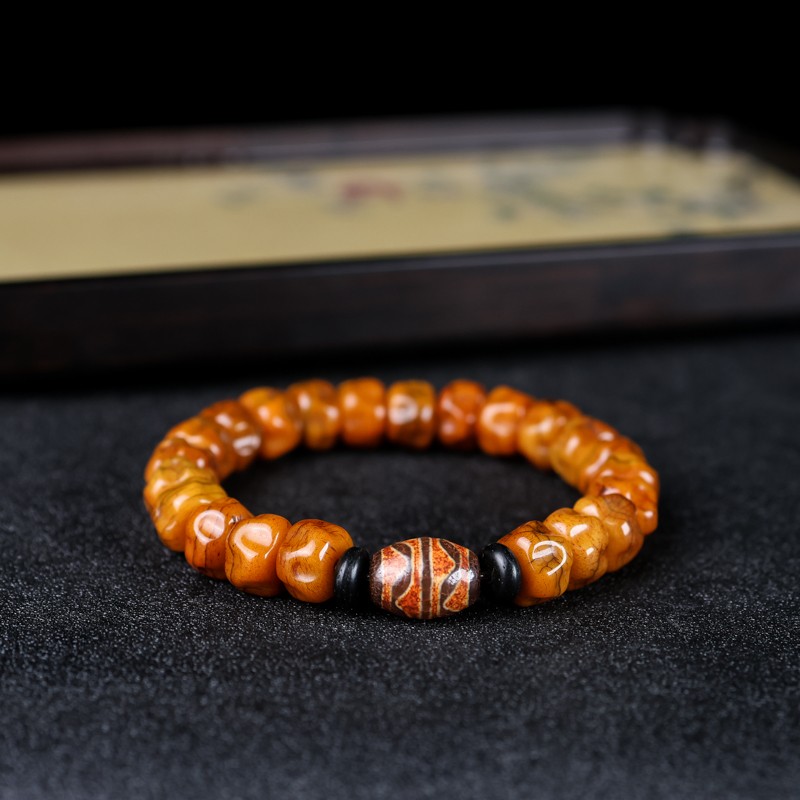 天然牛骨手串手工雕刻百香籽佛珠藏式老料牦牛骨佛珠男女款手链