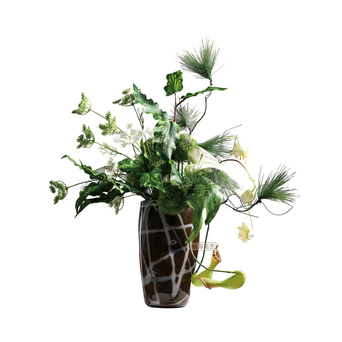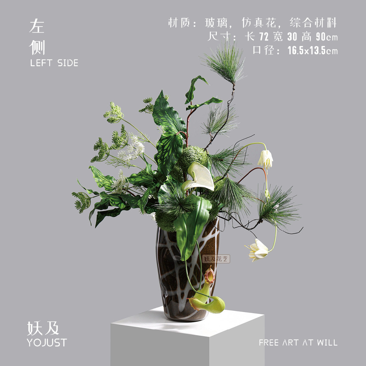 妖及 现代绿色系仿真花艺琉璃花器 售楼处会所酒店样板间酒店摆件