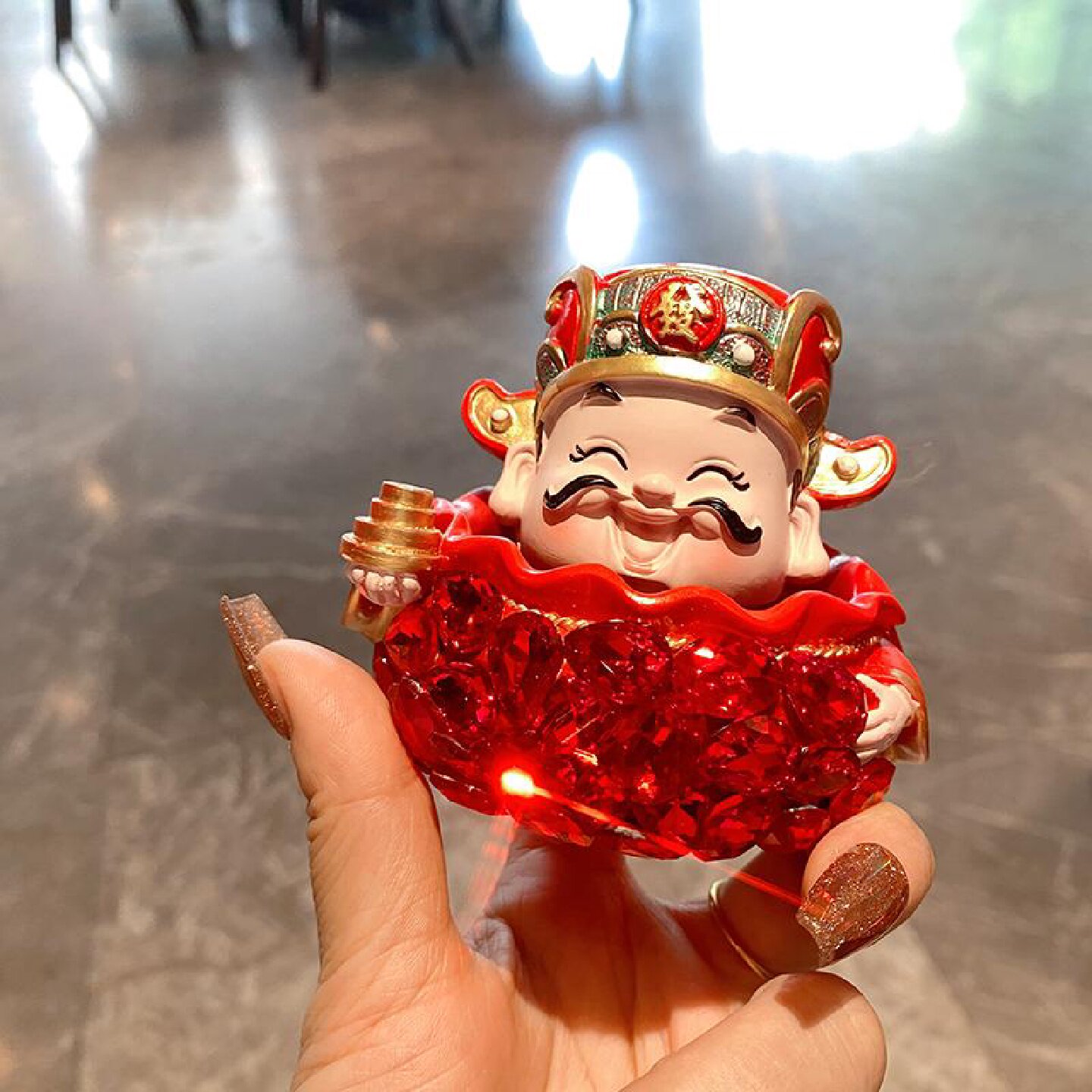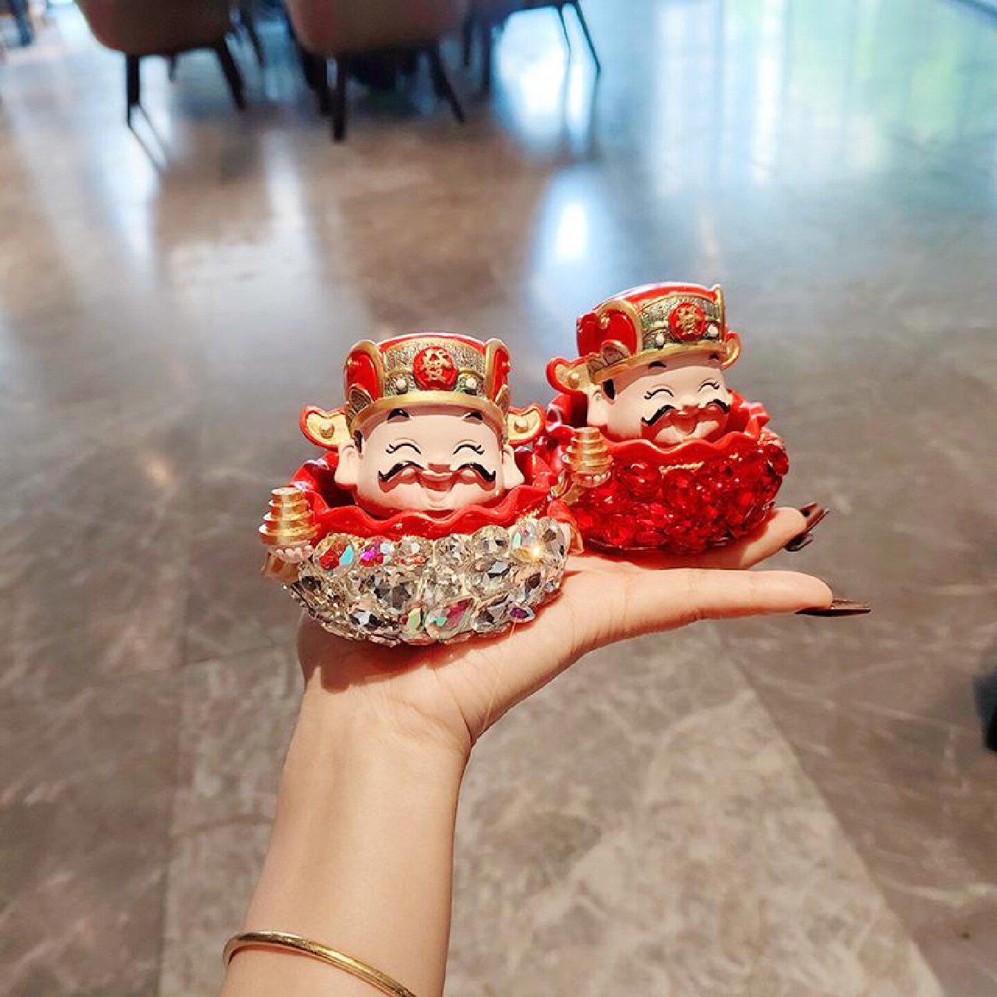 镶钻财神小摆件一对办公室桌家居汽车车载装饰品女生日红色礼物