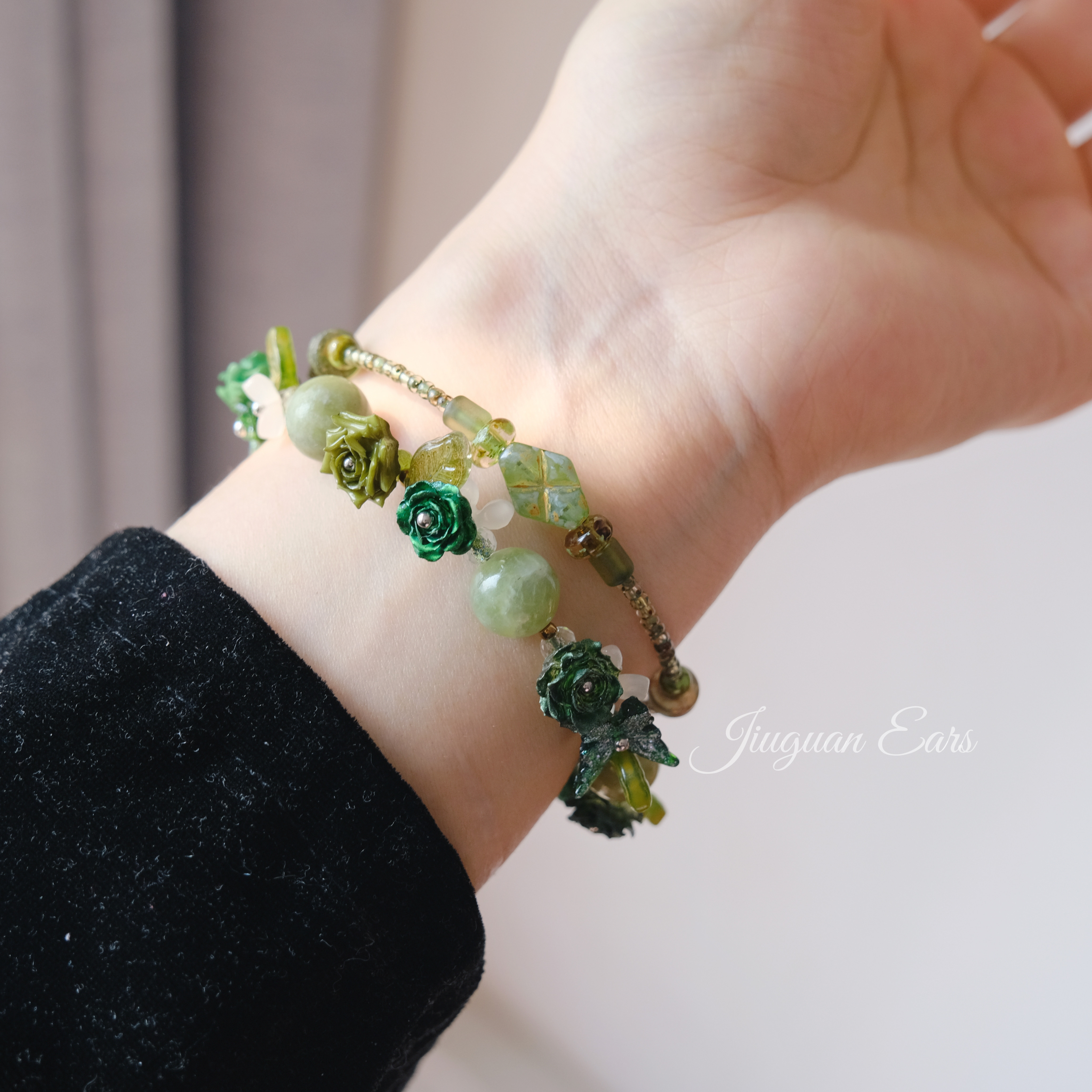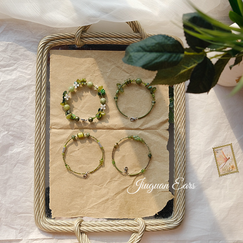 酒馆原创设计森系绿色系复古文艺手链手串百搭小清新