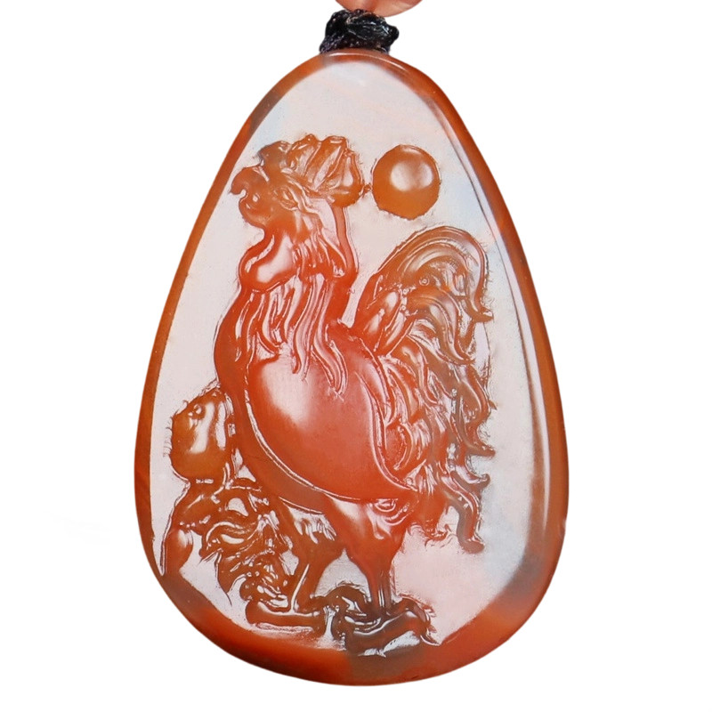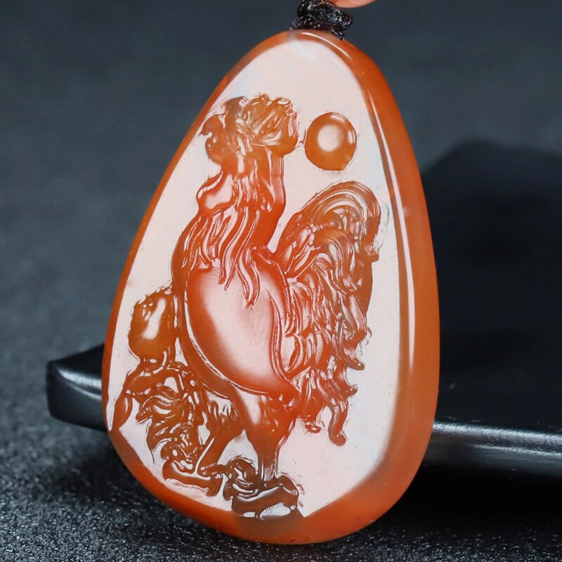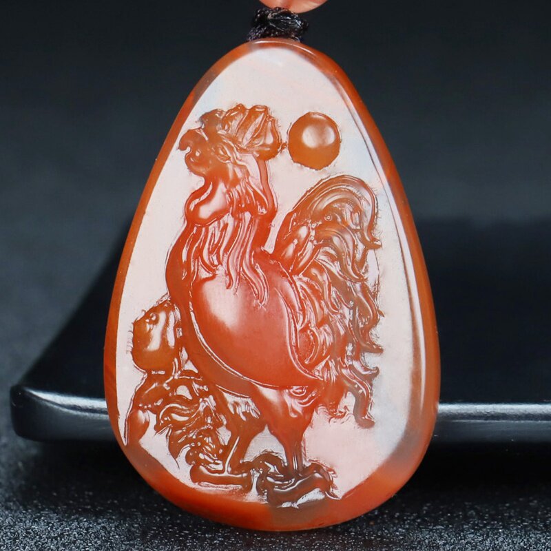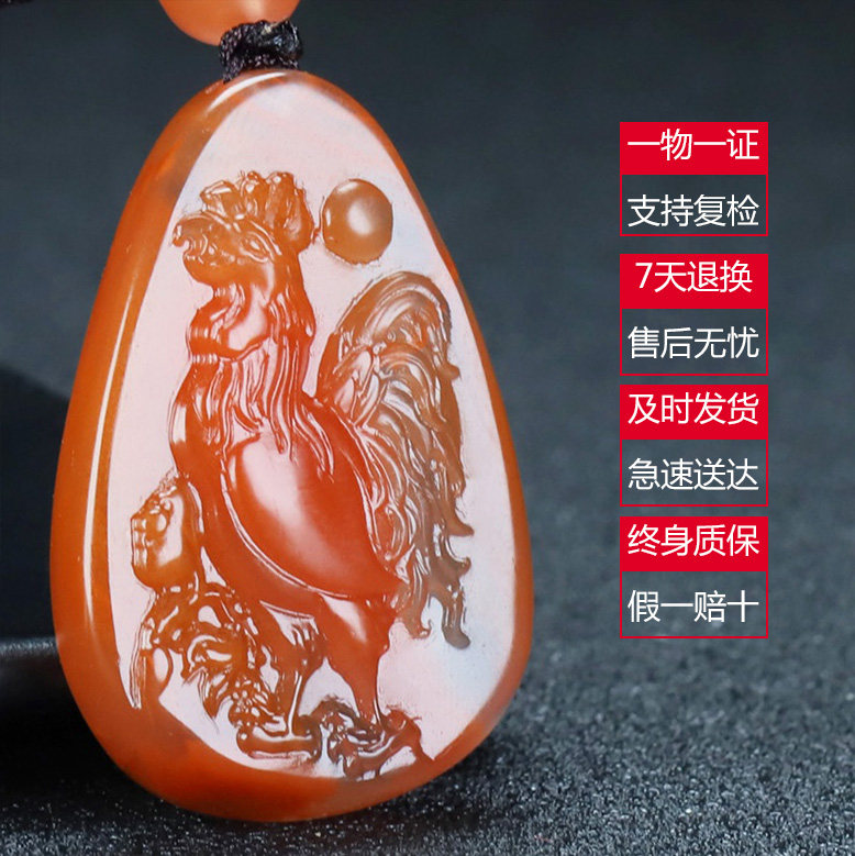 【原矿】天然凉山南红玛瑙吊坠生肖鸡樱桃红原矿无胶原石挂件34