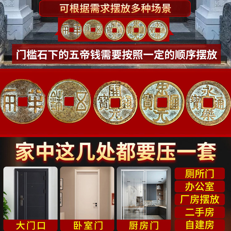 纯铜大五帝钱貔貅压门槛出入平安装修过门石下压的秦汉唐宋明铜钱