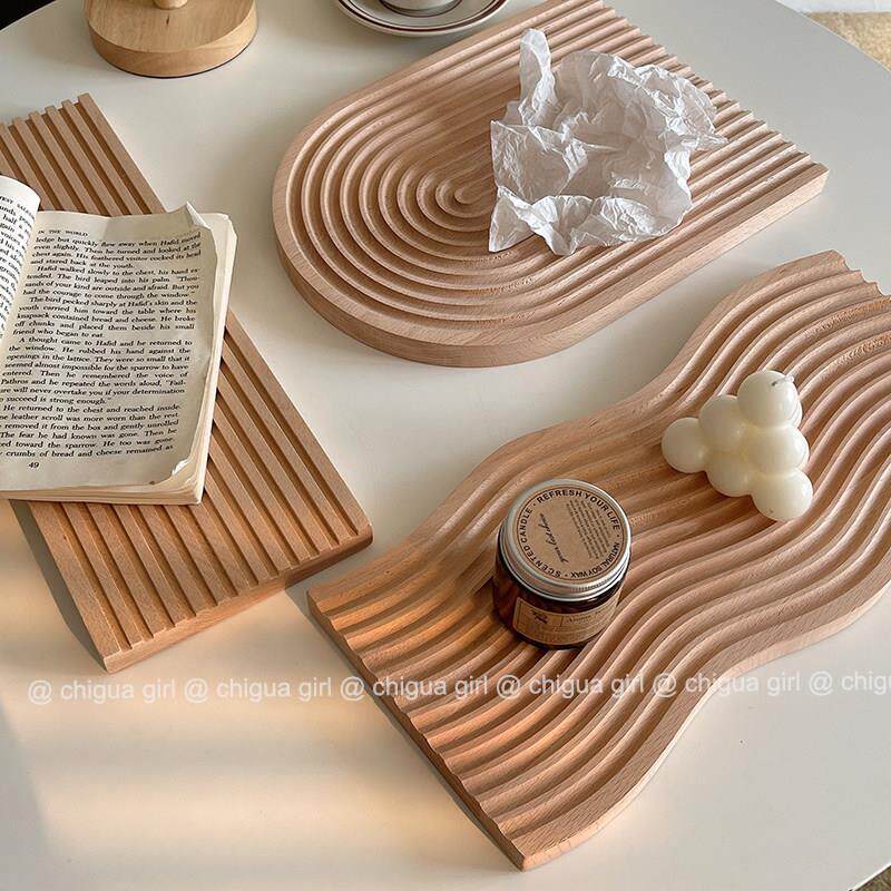 ins风北欧几何实木托 托盘日式风侘寂风收纳置物盘装饰拍照道具摆