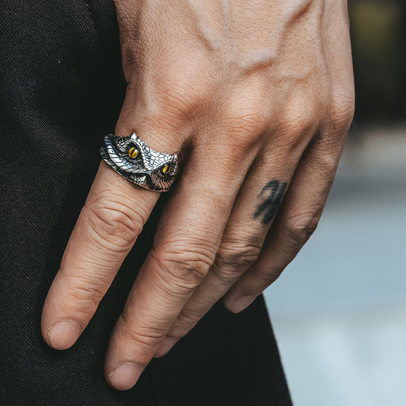 新款金眼角蟒蛇戒指男士学生蛇生肖开口指环配饰高级感小众食指戒