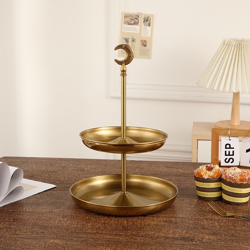 欧式轻奢多层铁艺水果盘家居客厅茶几摆件网红水果点心坚果收纳盘