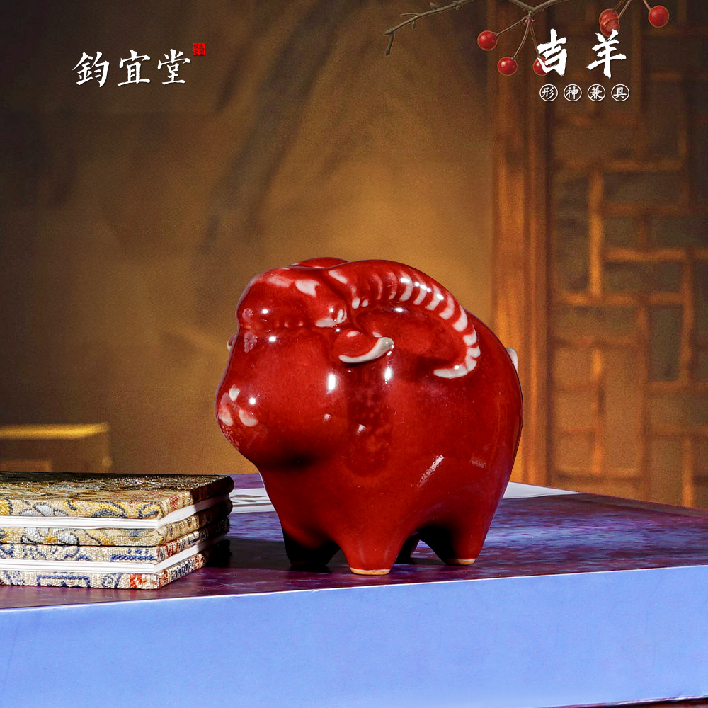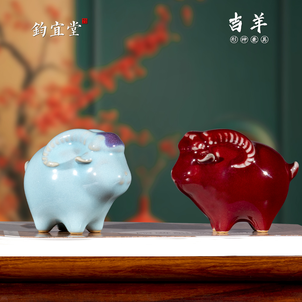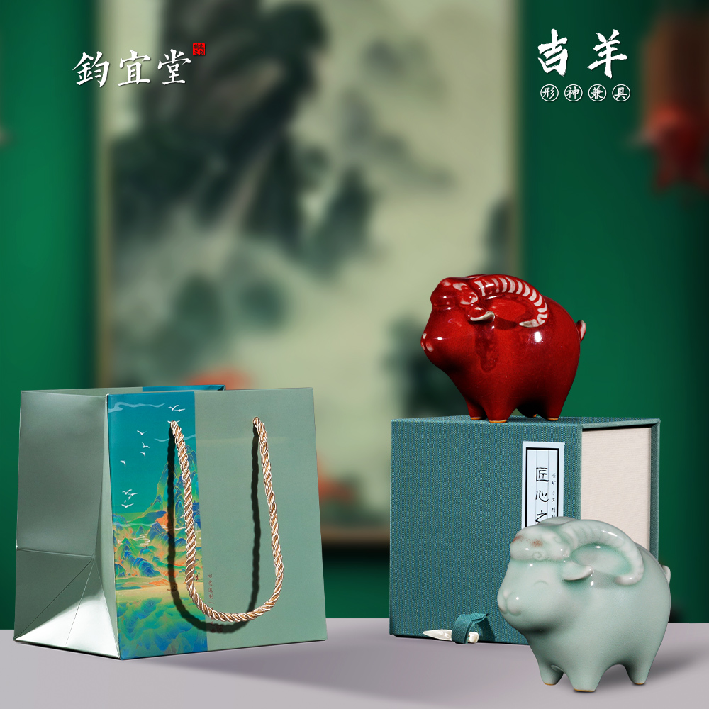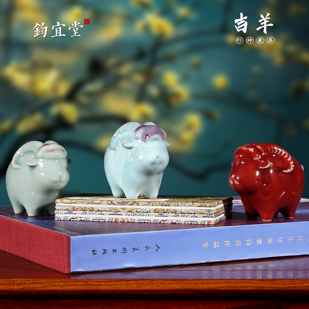 钧瓷陶瓷生肖羊摆件创意国潮文创家居客厅电视柜办公室装饰工艺品