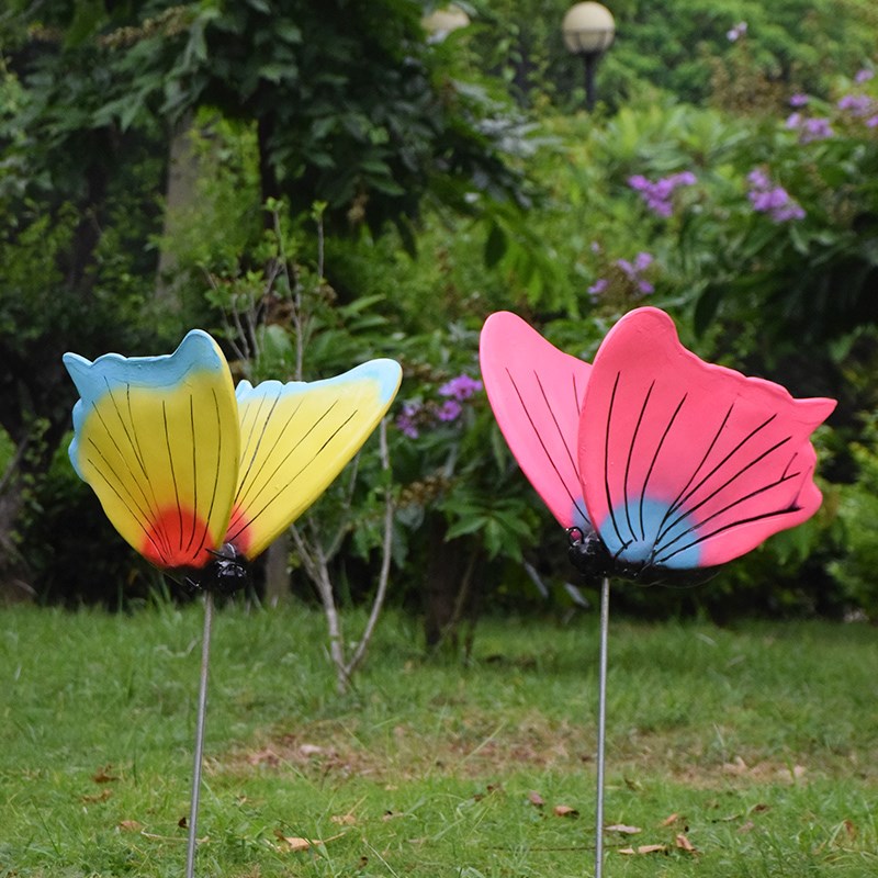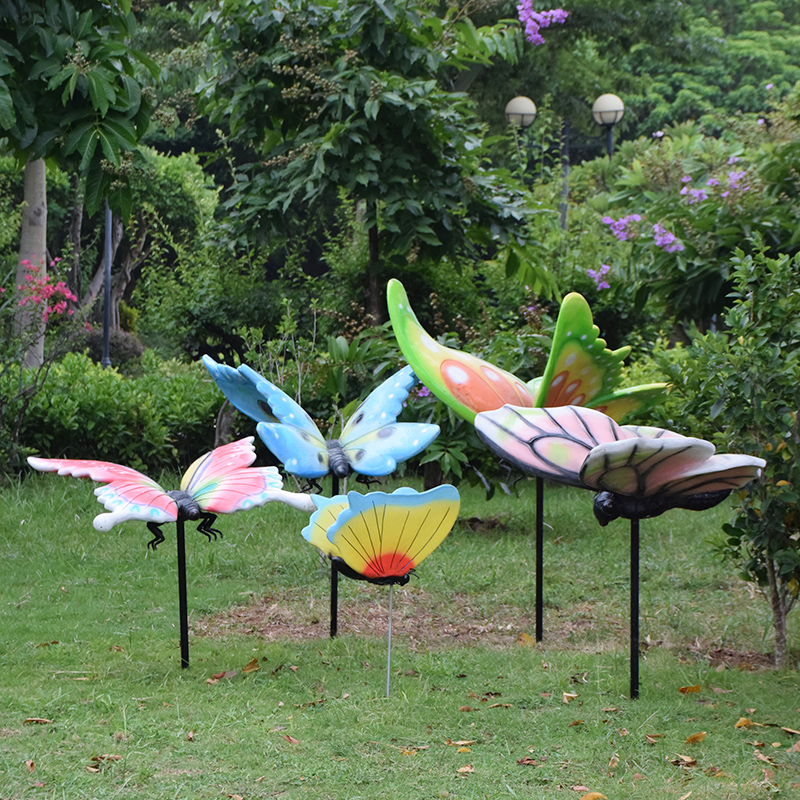 户外园林大型仿真蝴蝶摆件玻璃钢动物插件花园装饰卡通造景小品