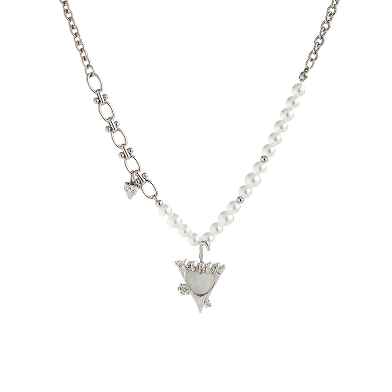 Esakoochi冬季秘恋~雪落在伞上爱心气质仿珍珠项链小众设计锁骨链