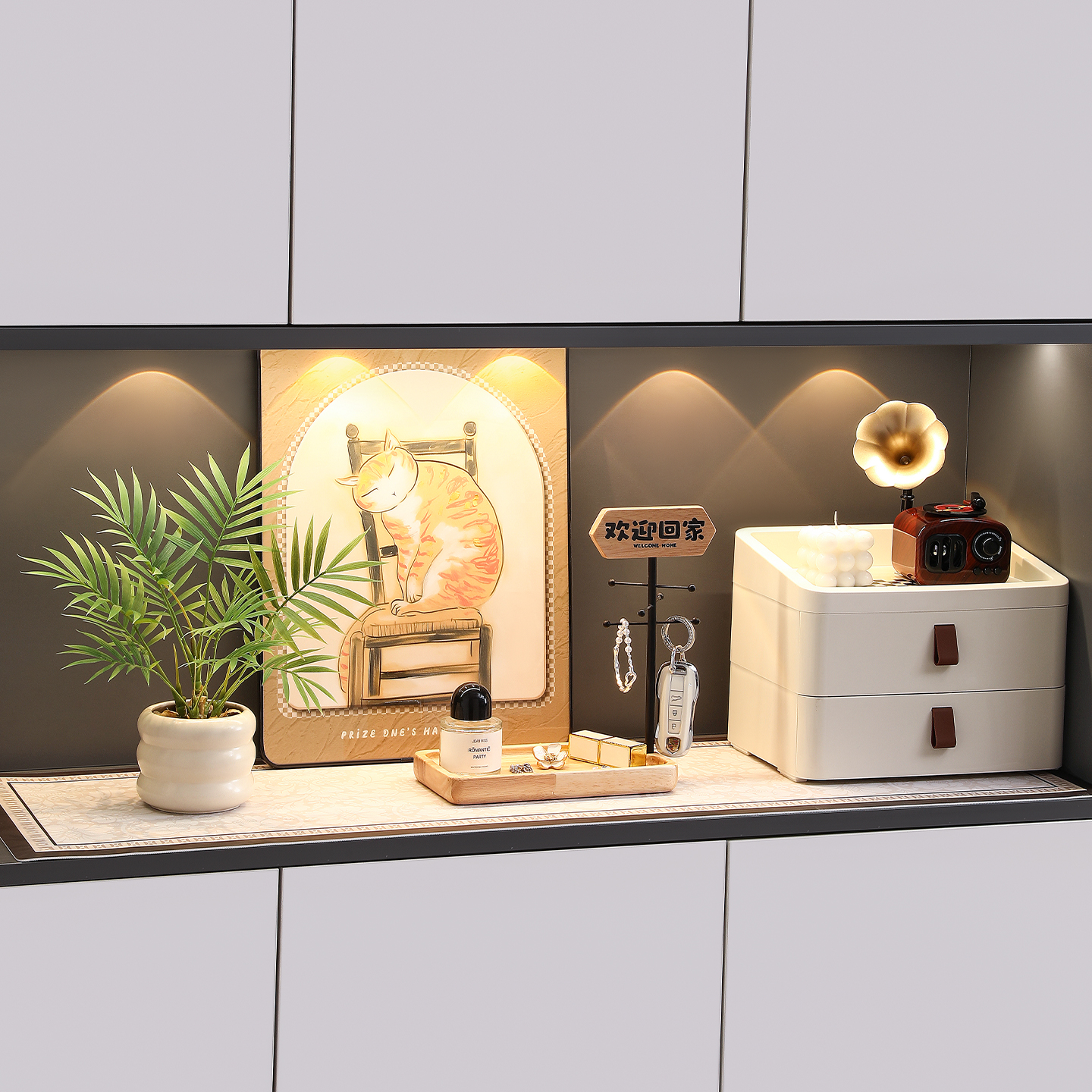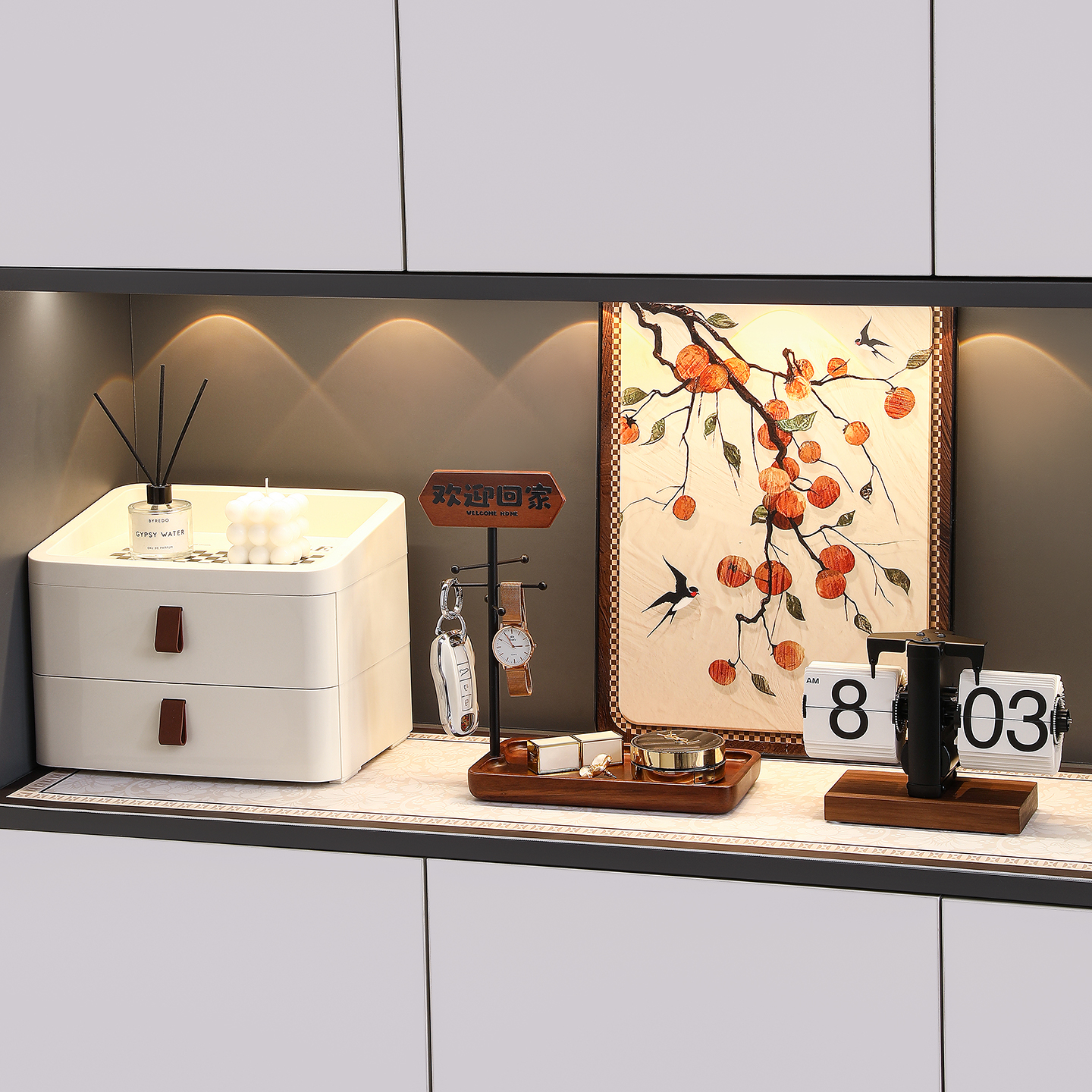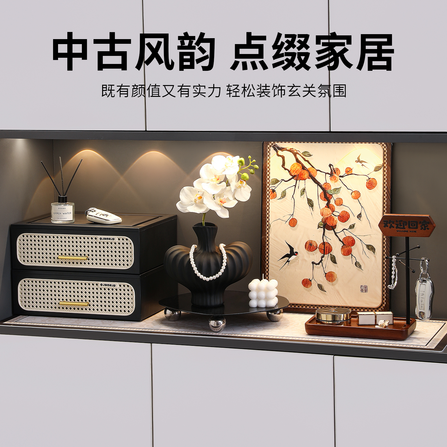 中古风玄关摆件进门口钥匙收纳装饰画软装鞋柜布置新中式家居好物