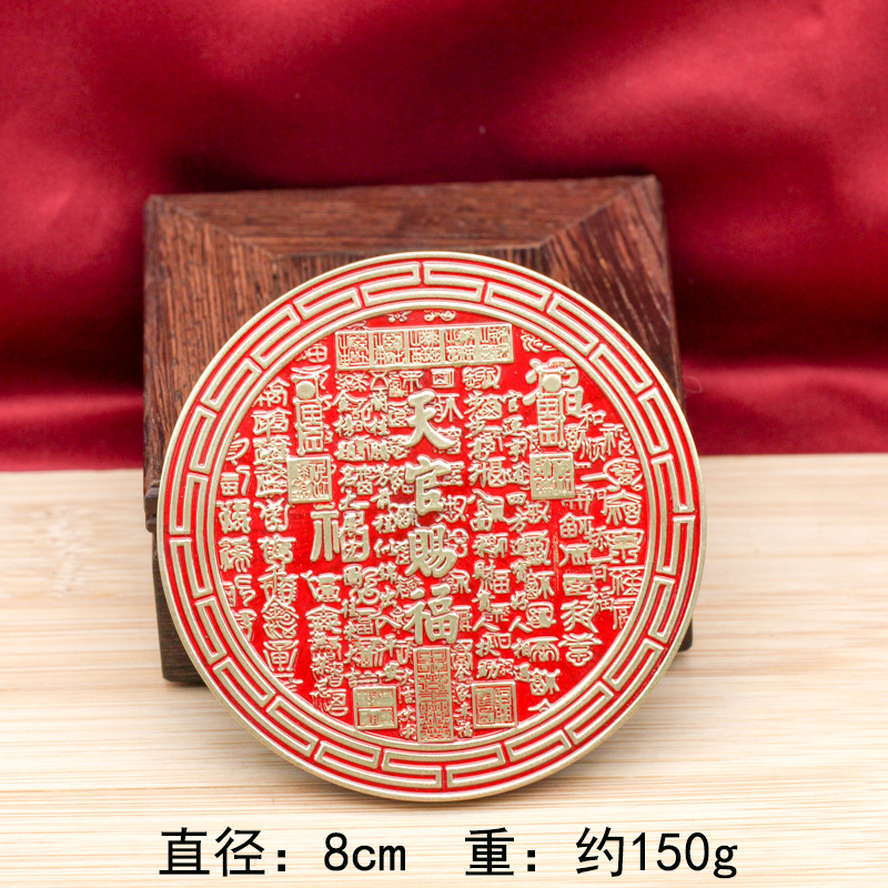 【已祝福】朱砂黄铜天官赐福大门玄关招财平安铜镜客厅桌面摆件