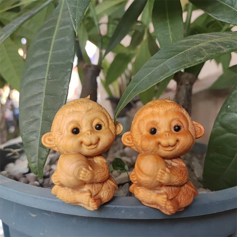 崖柏木雕刻猴子抱桃小摆件生肖猴手把件装饰品挂件创意工艺品礼品