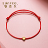 赛菲尔小铜钱足金黄金好运本命年红绳手链女3d硬金转运珠手串女款