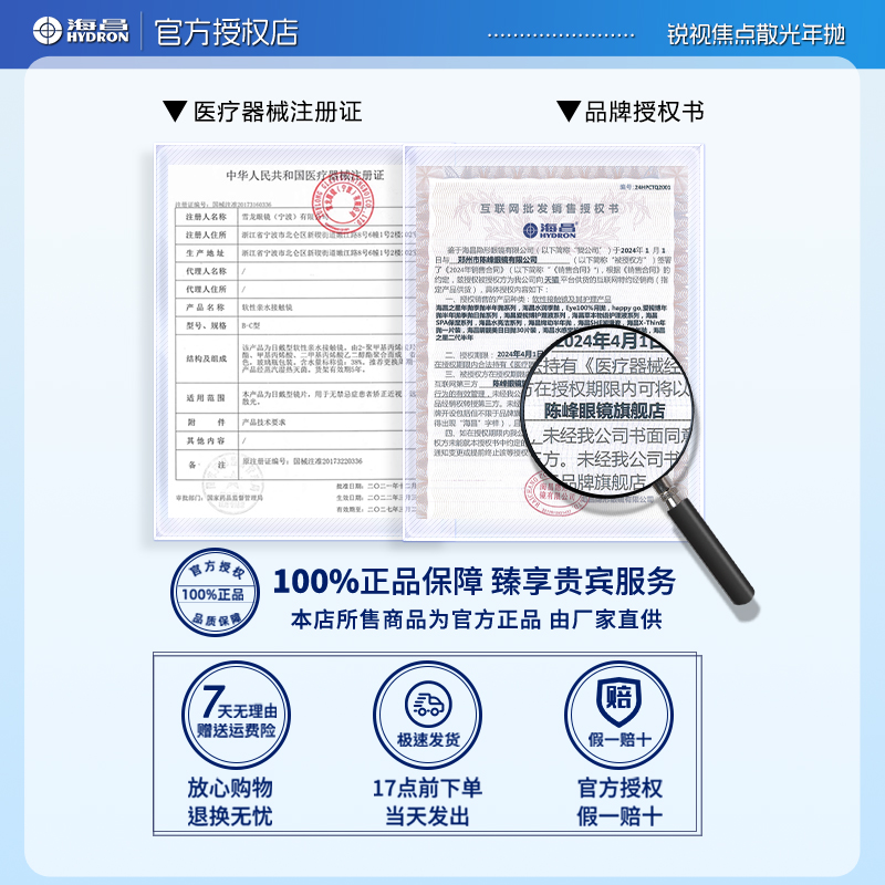 海昌散光隐形眼镜年抛2片近视高清锐视焦点官方正品专业定制顺丰