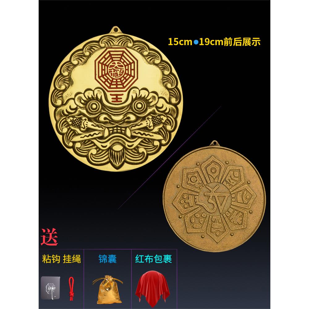 海神门符福贴家用门冲虎头牌八卦镜咬双剑吞口纯铜门对门化解挂件