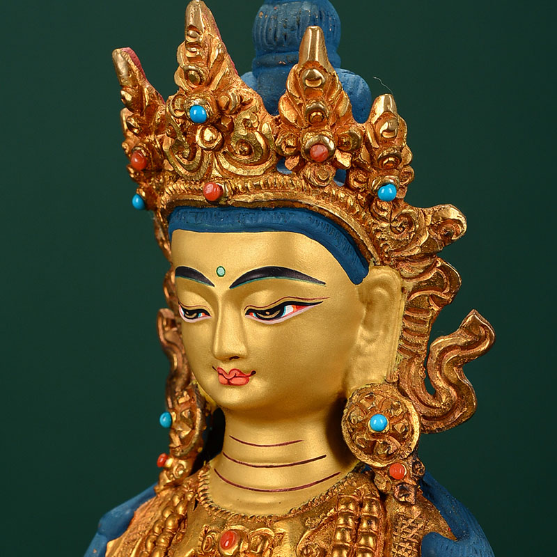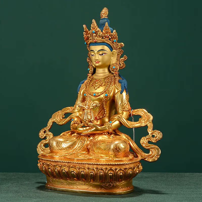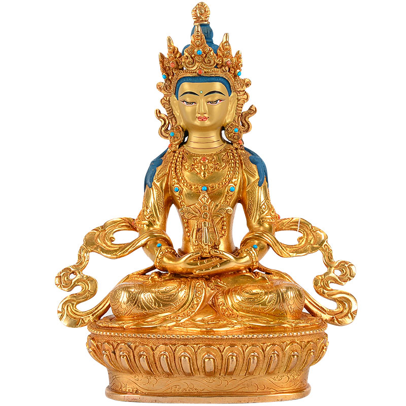 长寿铜像现代手工尼泊尔7寸铜鎏金雕花家居室内摆件