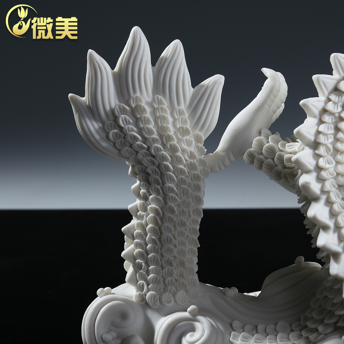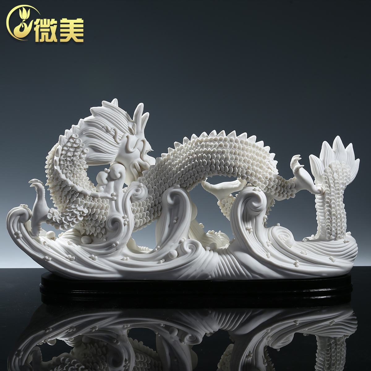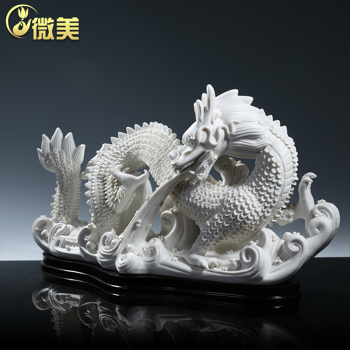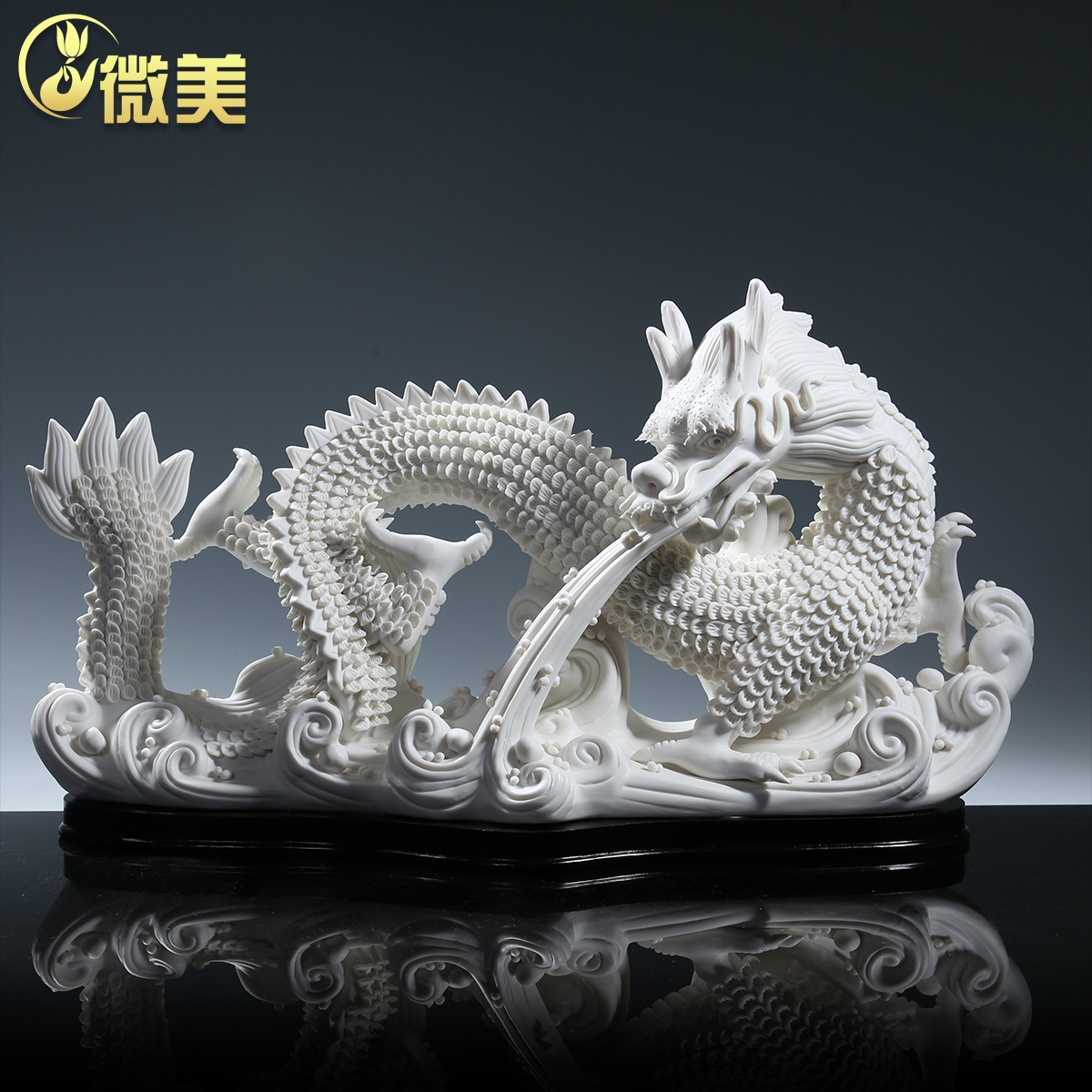 微美陶瓷龙摆件双龙戏珠中国白瓷工艺品客厅玄关乔迁新居礼品摆设
