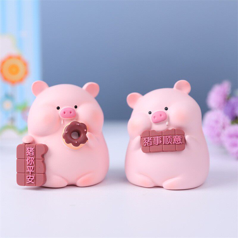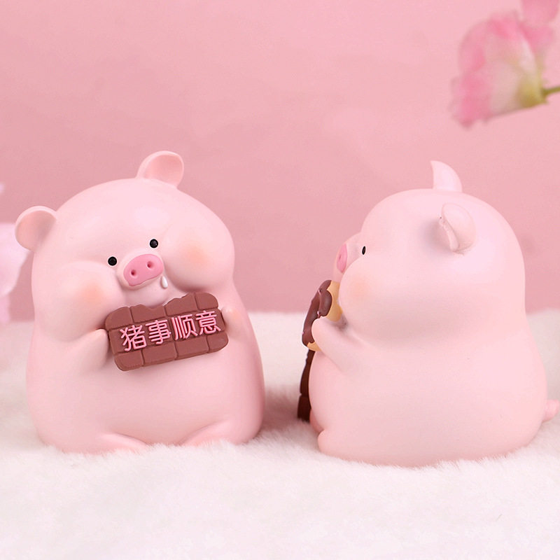 可爱卡通小猪摆件创意树脂猪猪玩偶治愈系车载桌面装饰粉红色摆件