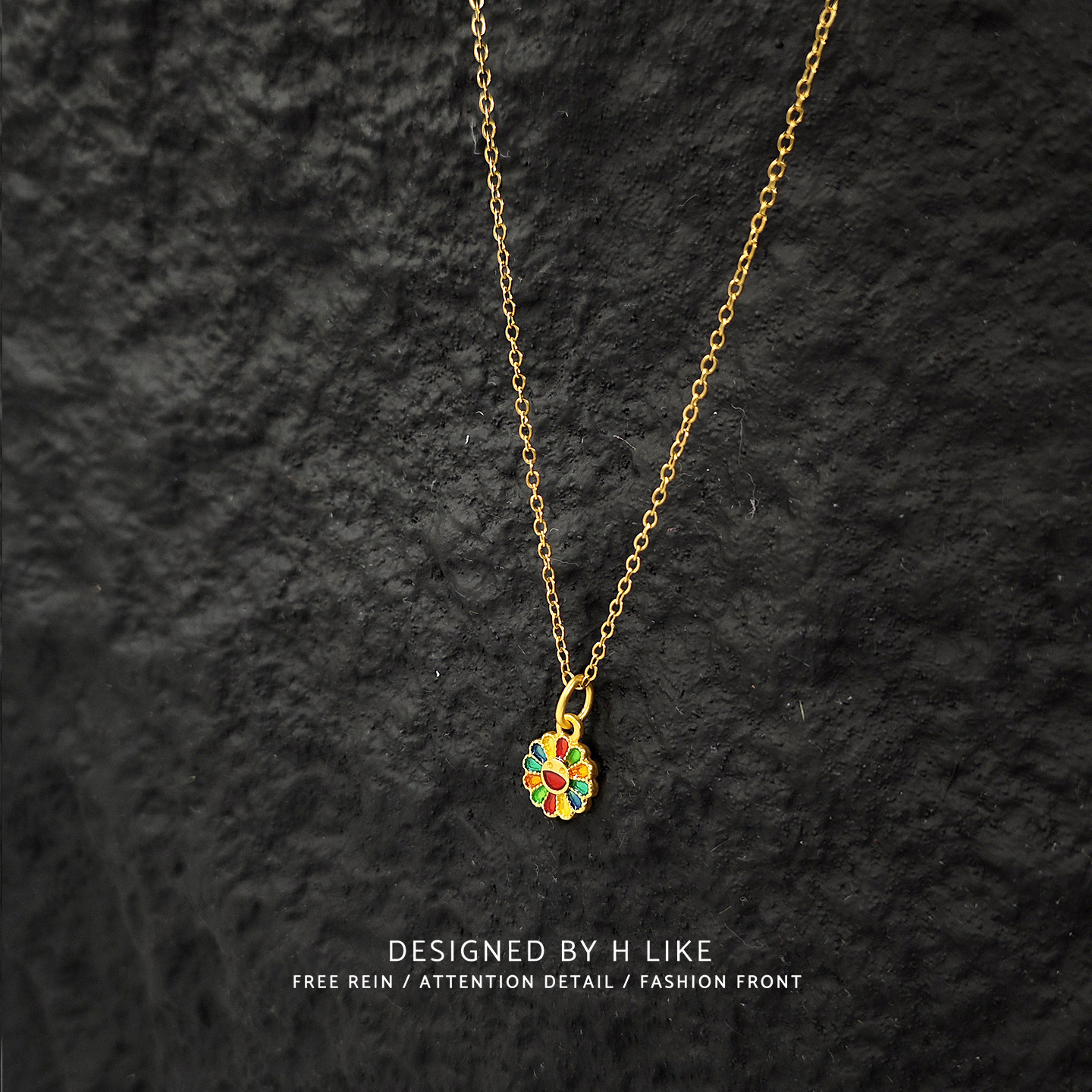 金色向日葵钛钢项链女小众设计高级感百搭锁骨链时尚气质吊坠轻奢