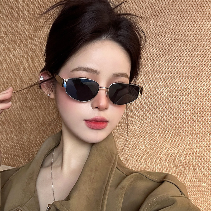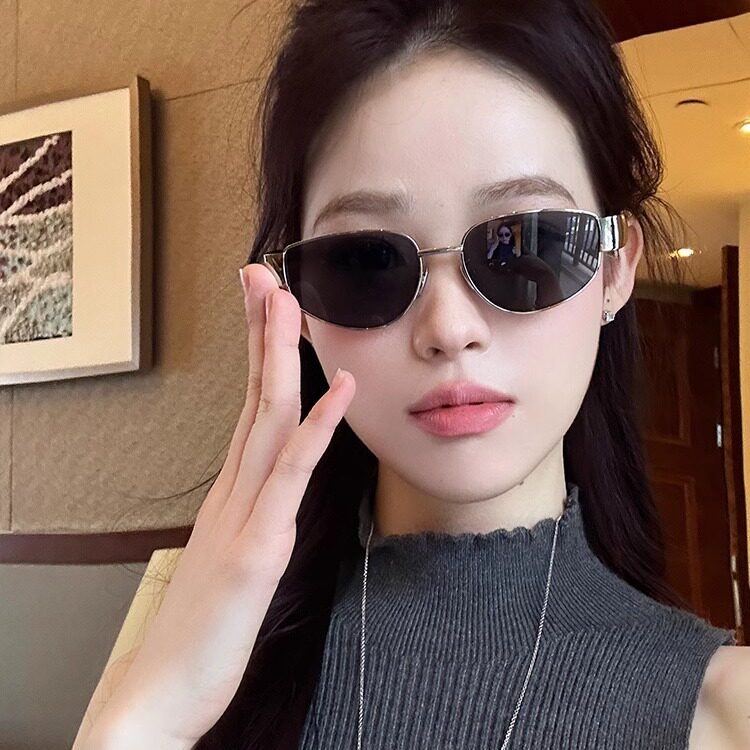 复古老钱风金属椭圆形墨镜女款防晒高级感小框港风凹造型太阳眼镜