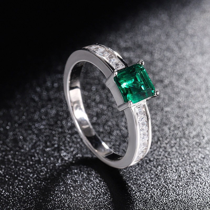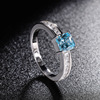 S925银镀18K金镶嵌海蓝宝祖母绿色小方块2克拉简约戒指主石6*6