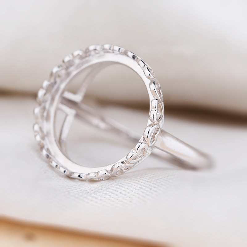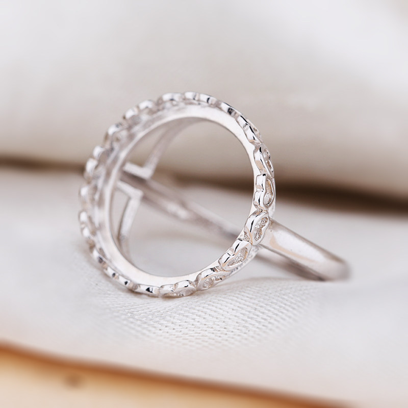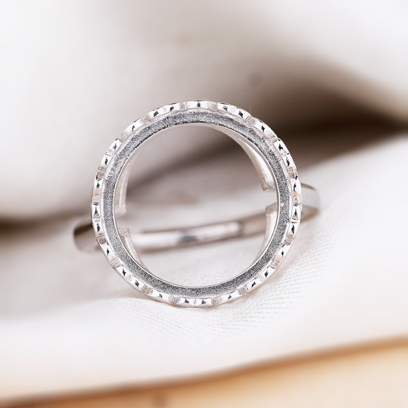 S925银女款戒指空托手工DIY镶嵌蜜蜡琥珀圆形戒指托开口戒托16*16