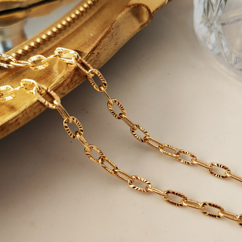 法式轻奢压花钛钢手链女百搭镀18k金小众设计简约森系素项链批花