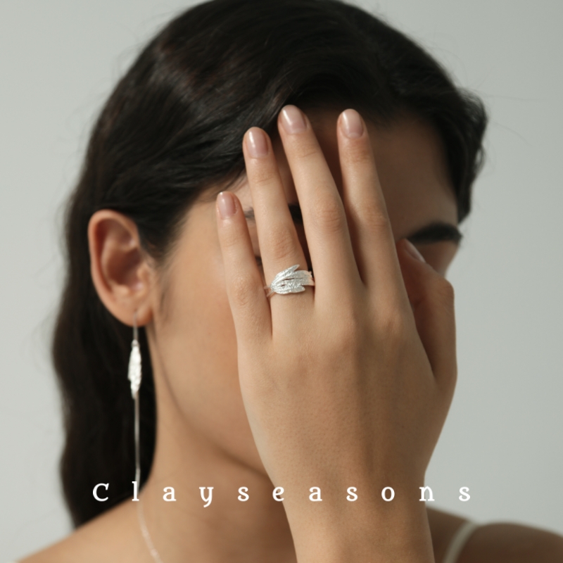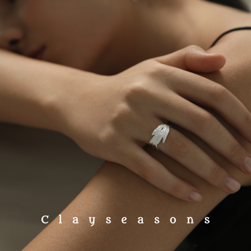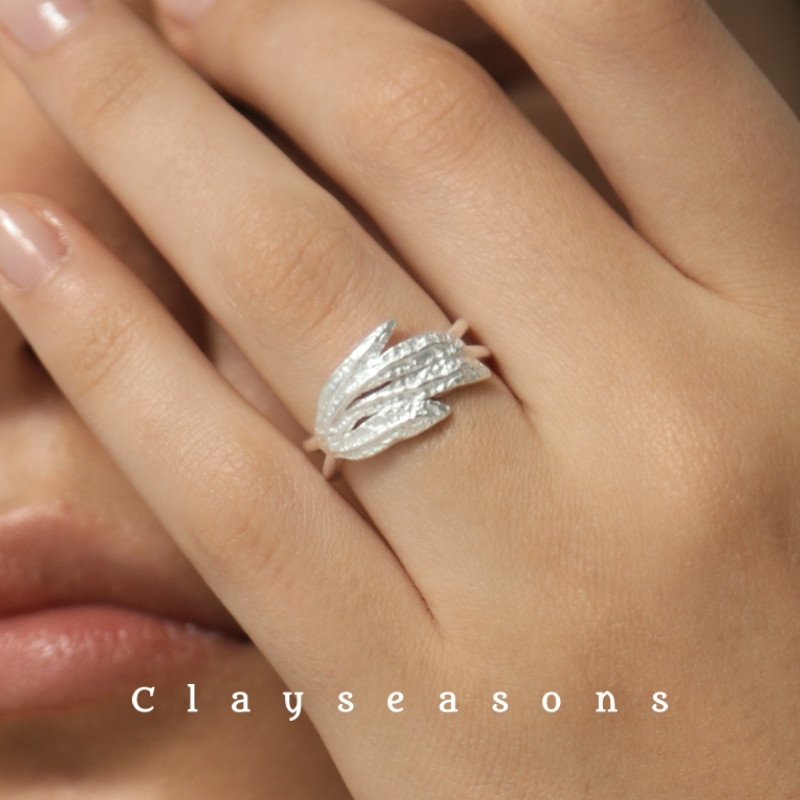 Clayseasons白叶戒指 原创设计感纯银叶子手工肌理度假风开口戒