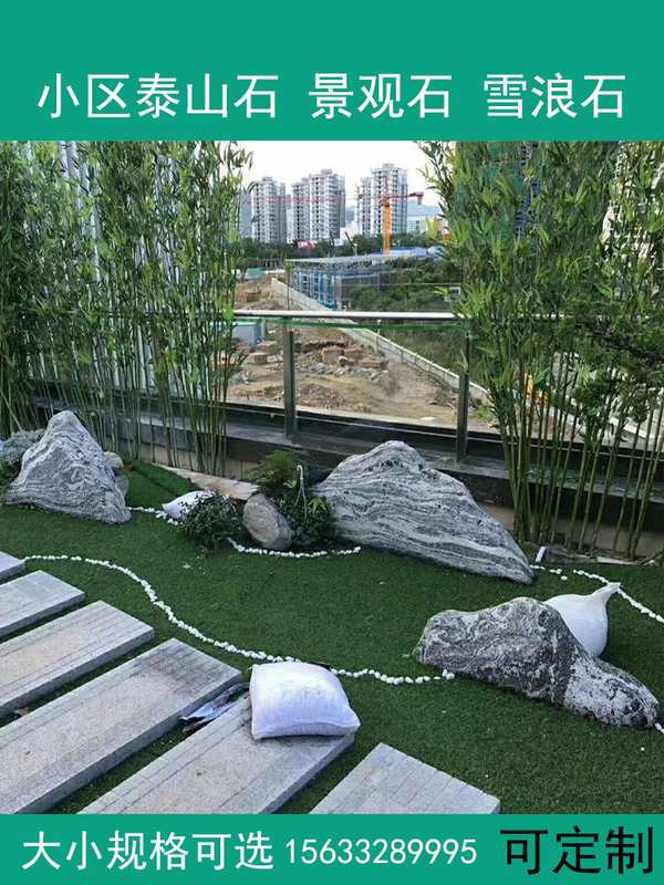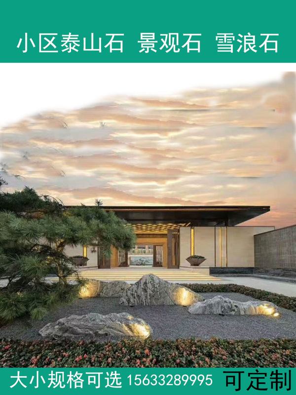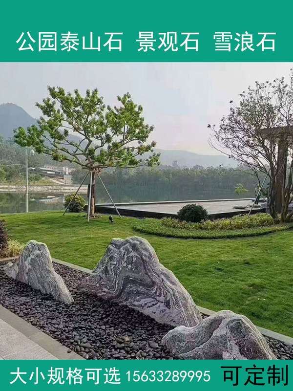 泰山石原石室外庭院枯山水户外大型假山雪浪石头组合造景观石刻字