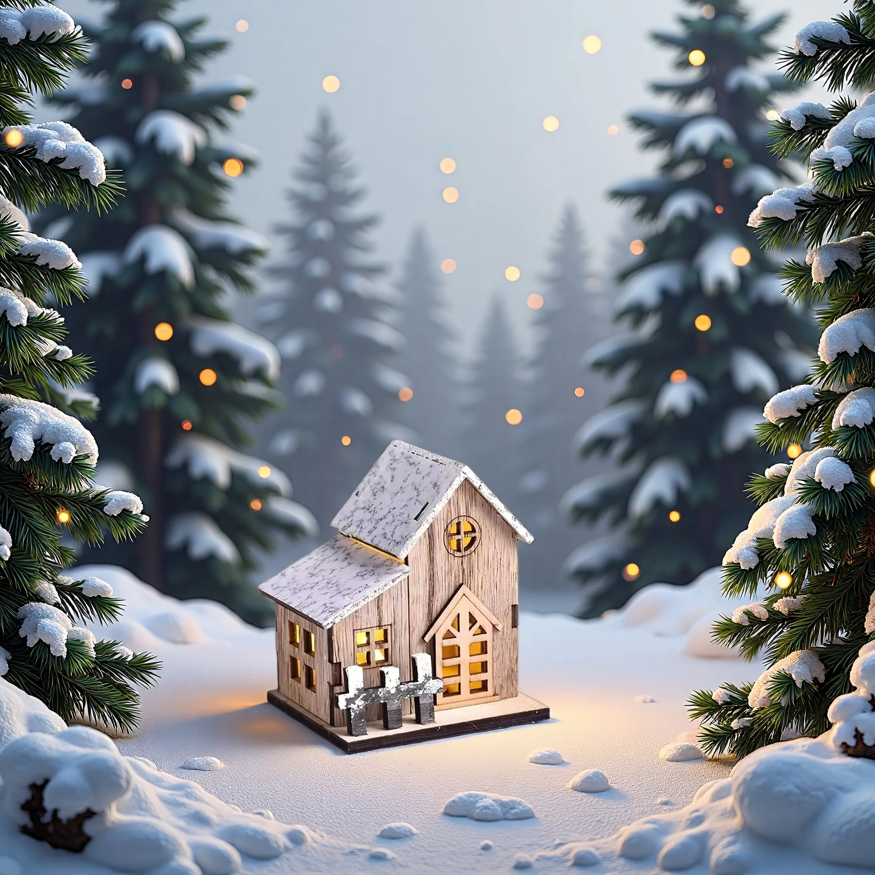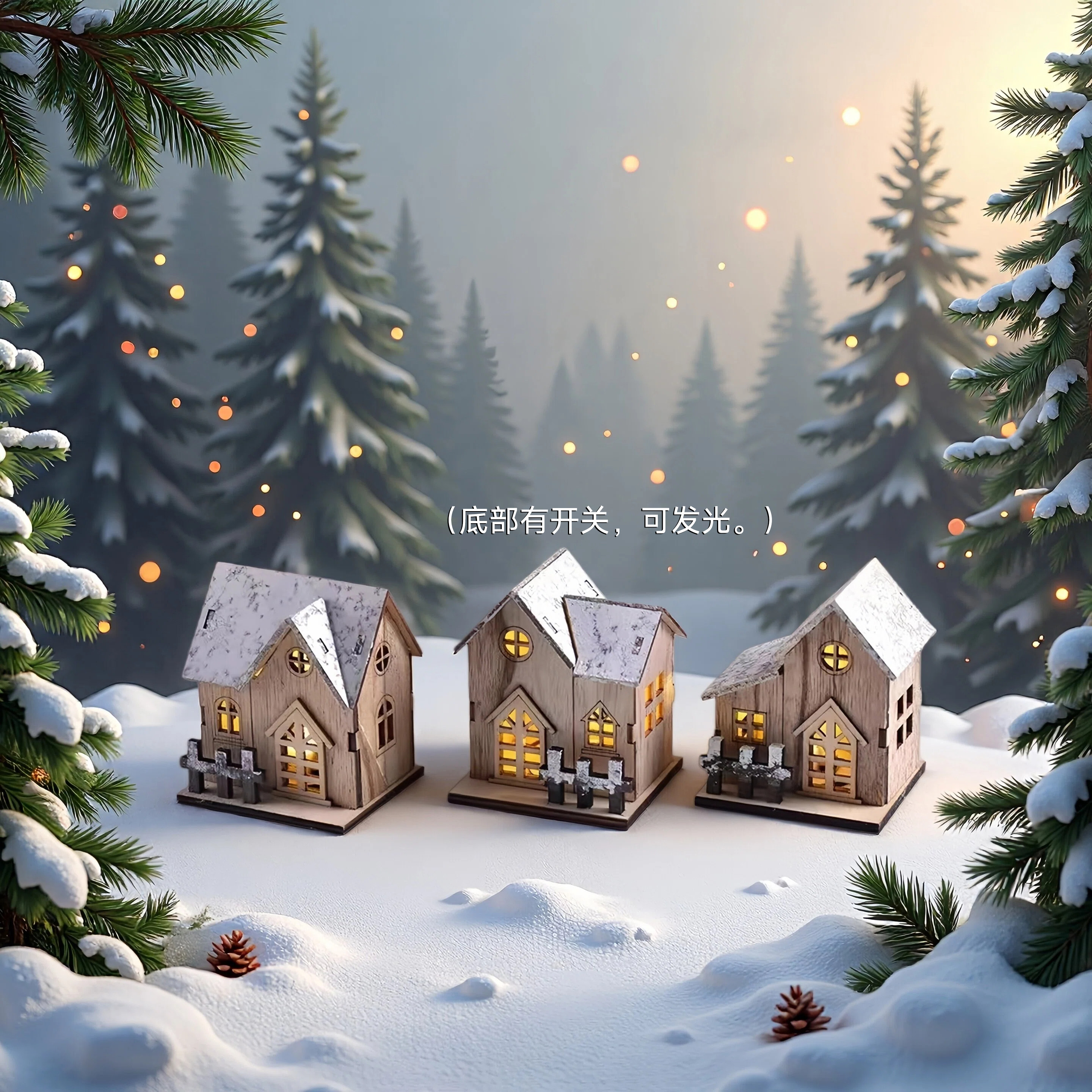 森林雪景圣诞主题木质小屋房子装饰小摆件可发光微景观造景装饰品