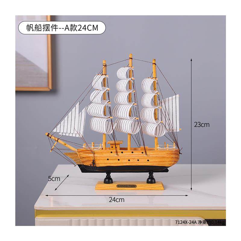 适用一帆风顺创意彩绘小帆船手工木质摆件工艺品帆船模型店铺家居