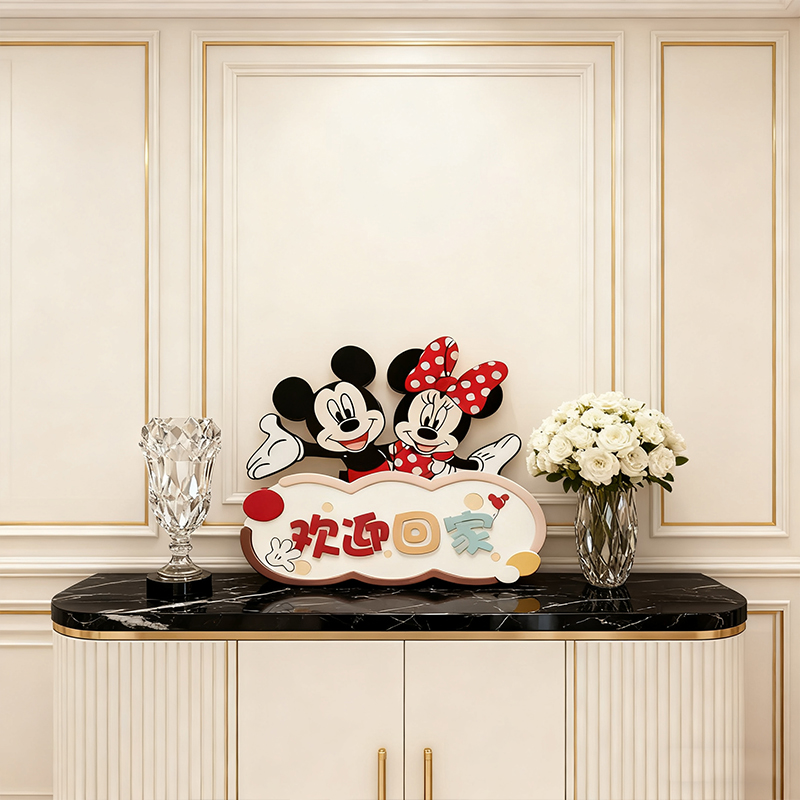 米奇米妮欢迎回家入户门玄关柜装饰摆件客厅电视柜装饰品创意可爱