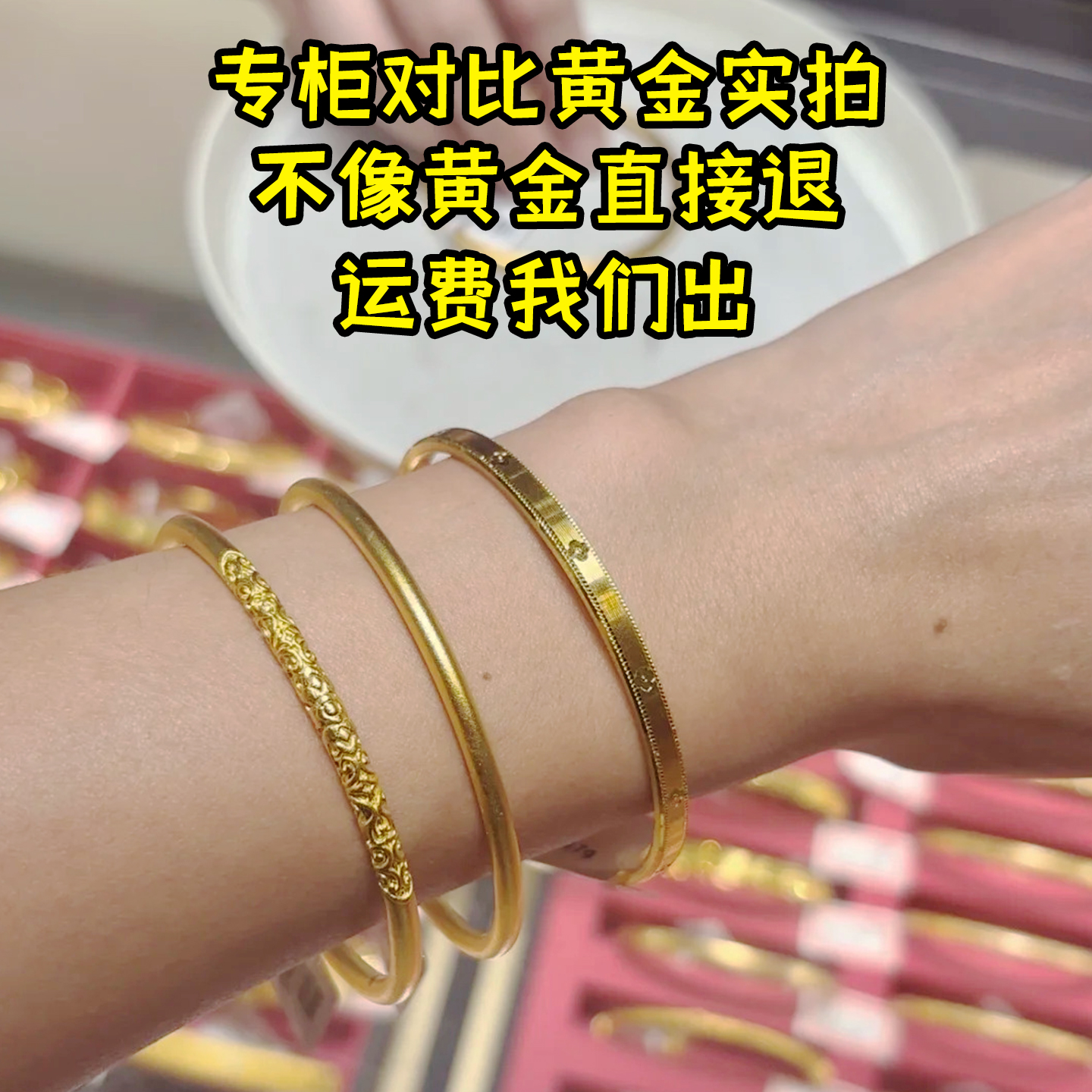当前位置:首页>商品详情>古法沙金传承手镯女素圈黄金色999越南金镯子手环不掉色结婚首饰