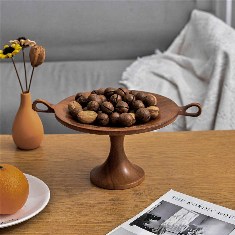 中古风木质托盘家用桌面收纳装饰摆件客厅点心盘实木复古双耳托盘