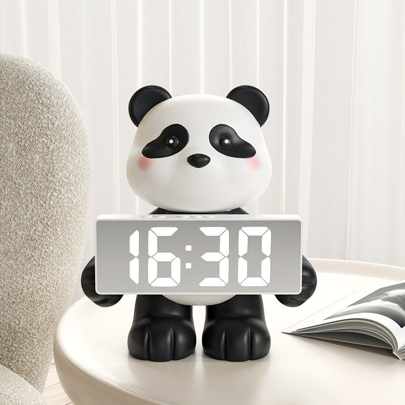 熊猫花花时钟摆件客厅卧室床头柜数字静音小闹钟玄关桌面电子钟表