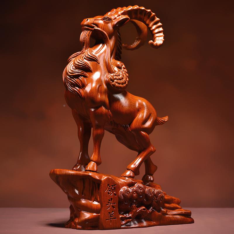 5板ZW领头羊摆件工艺品二生羊花梨实木雕刻F767886H肖老办十公桌