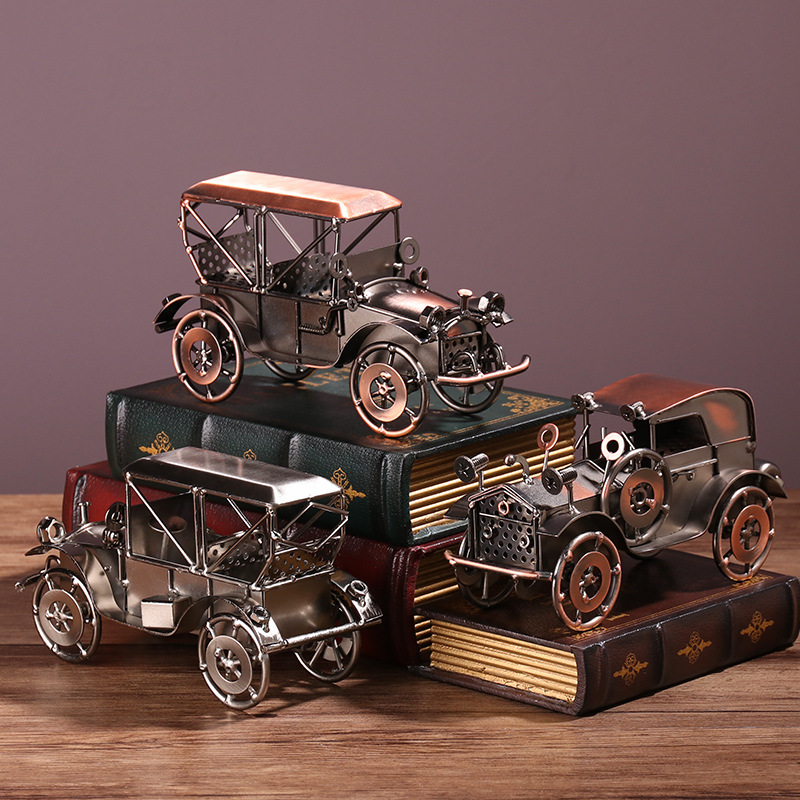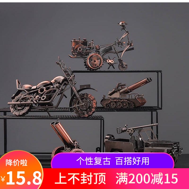 复古铁艺摩托车汽车金属模型摆设创意家居桌面装饰品酒柜书架摆件