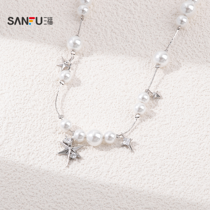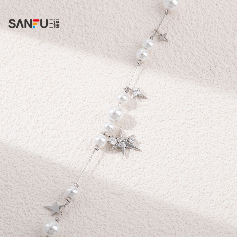 三福珠珠璀璨星河短项链单条 时尚小众气质首饰配饰链条