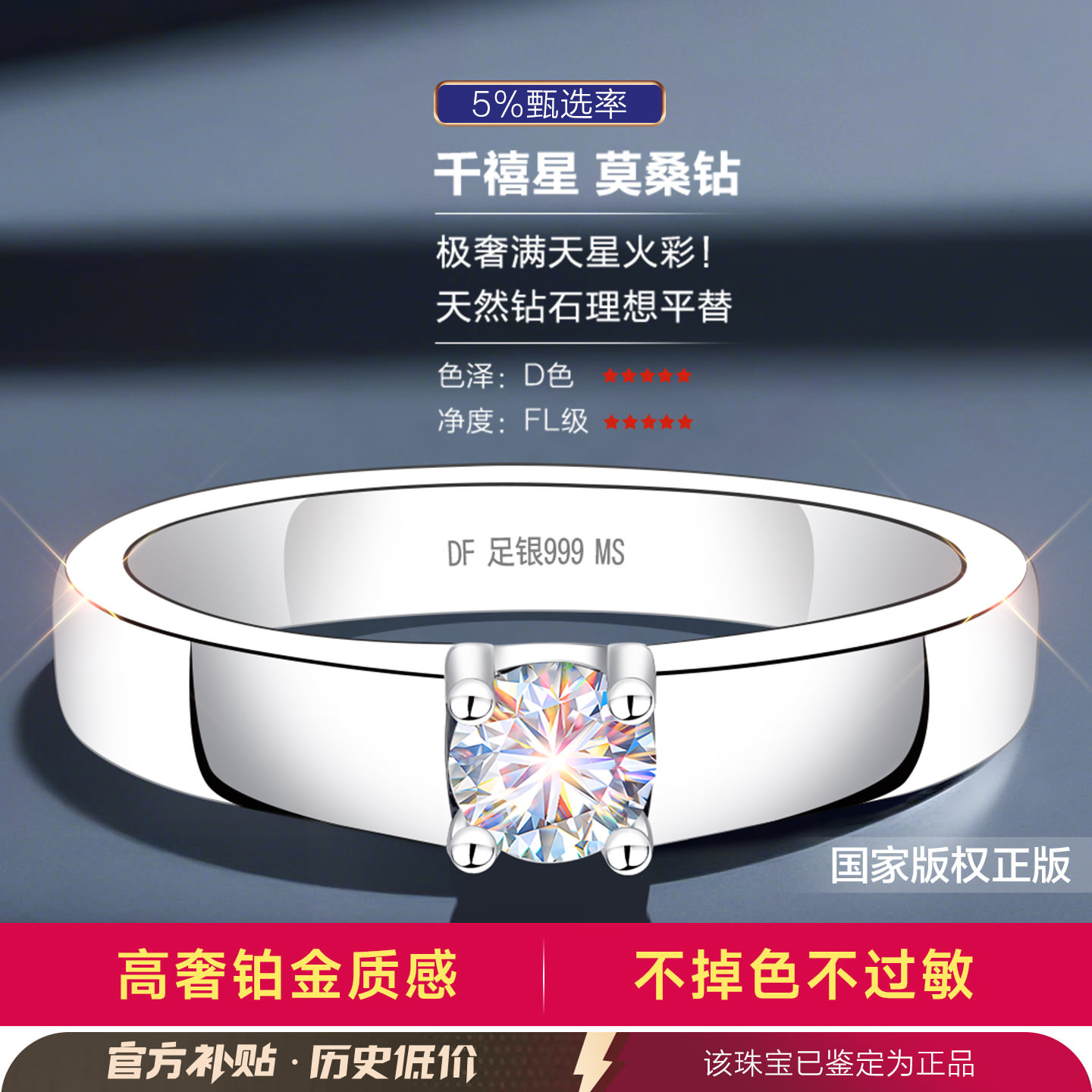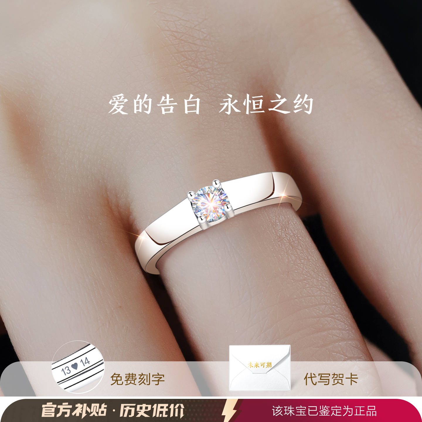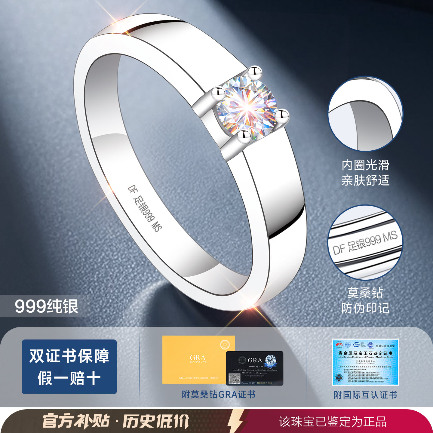 莫桑钻银戒指999纯银男士男款男高级感情侣对戒钻戒闭口结婚婚戒