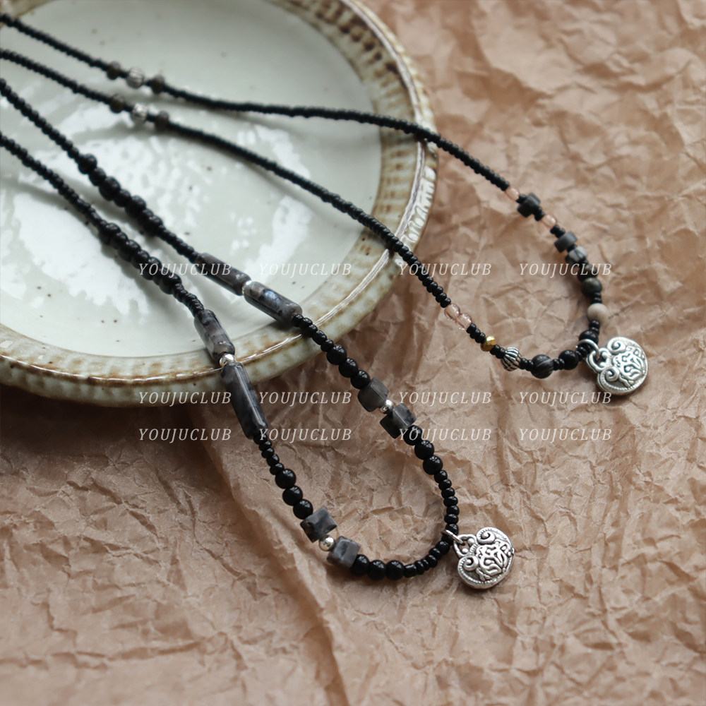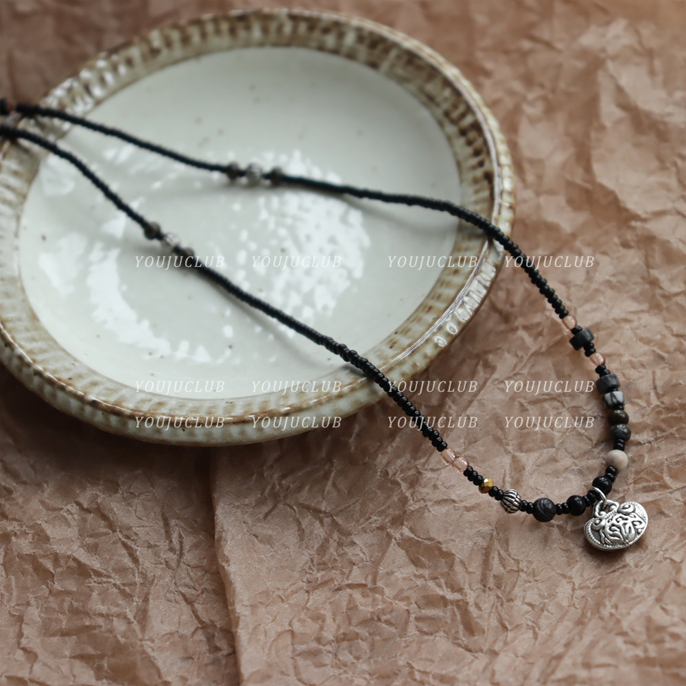 YOUJUclub-秦时 新中式民族风黑色平安锁项链复古国风禅意锁骨链