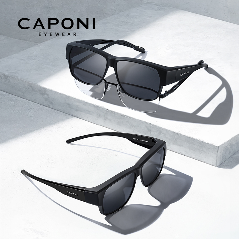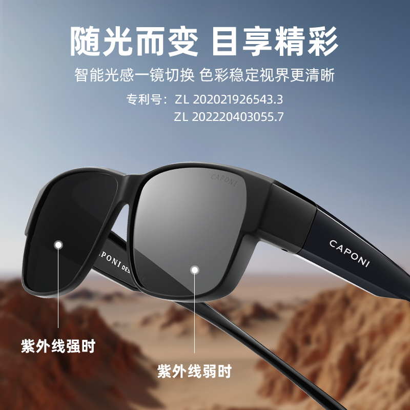 CAPONI墨镜套镜近视专用日夜两用男款开车专用偏光镜变色太阳眼镜