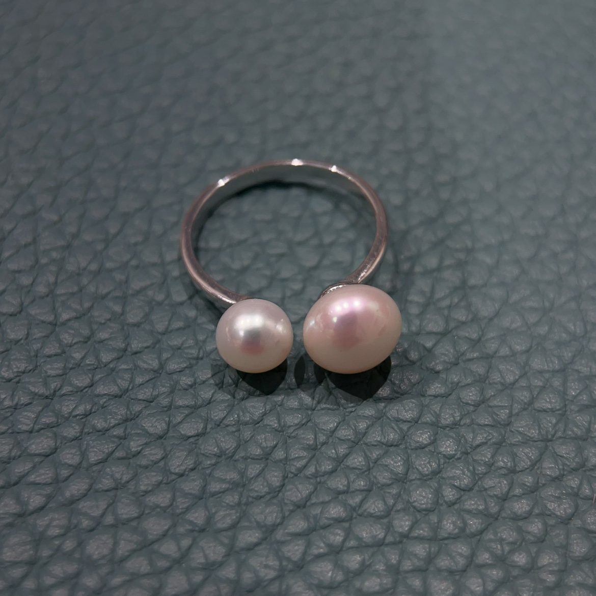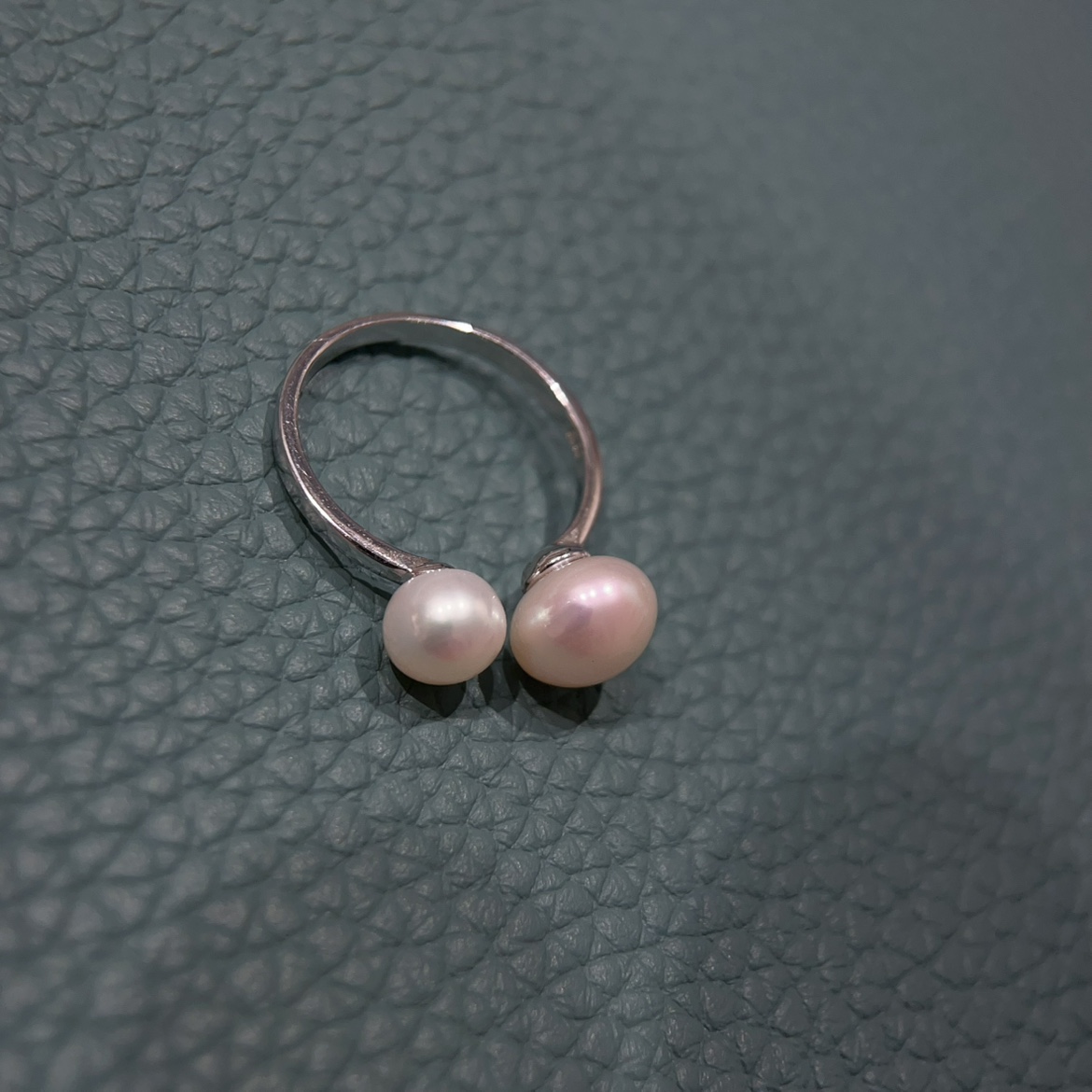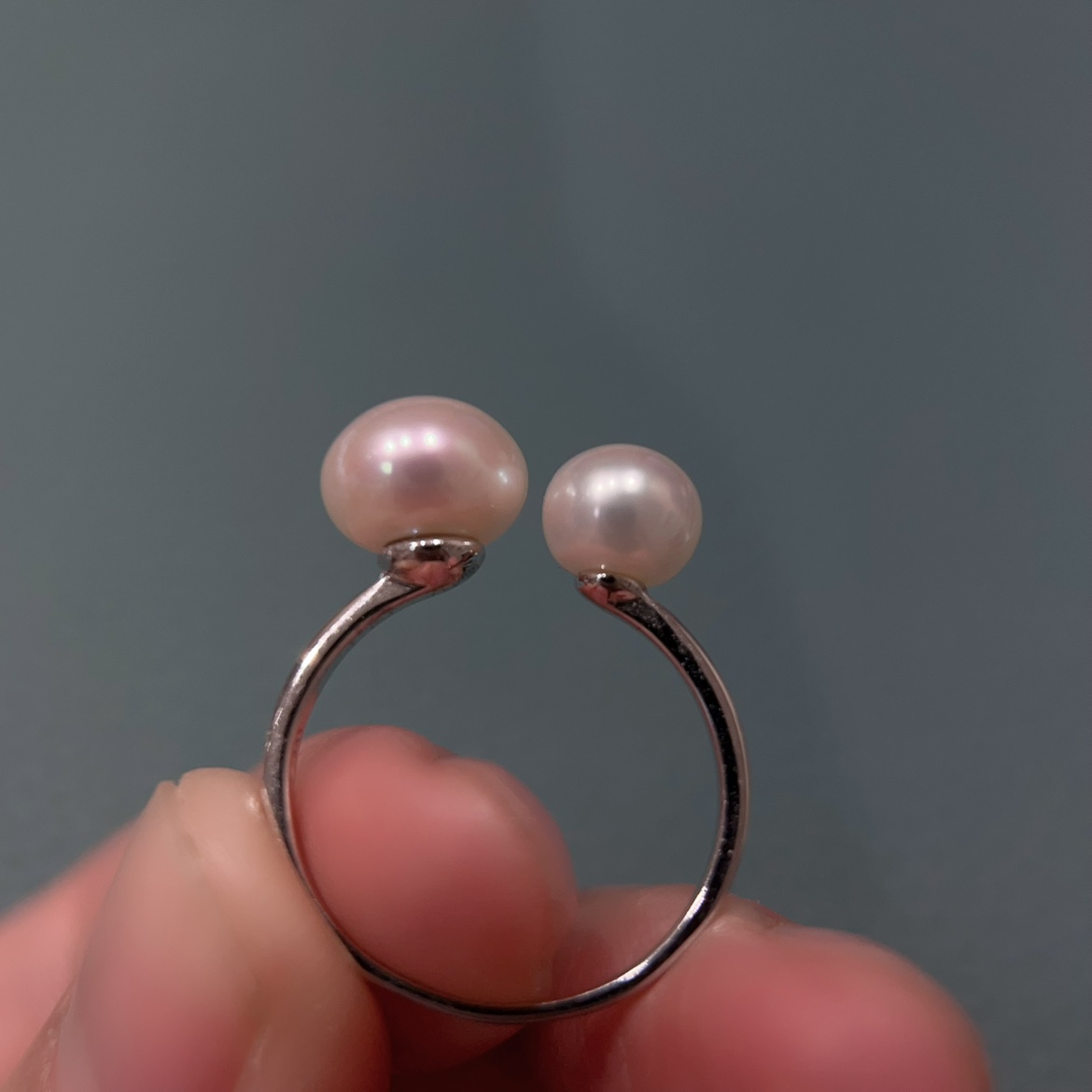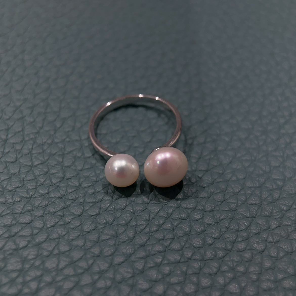 灵动双生天然珍珠S925纯银开口戒指一大一小珍珠设计女款