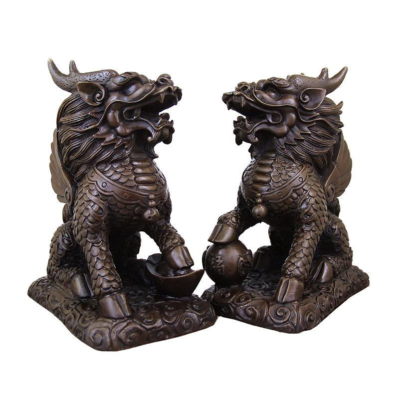 全铜麒麟摆件一对大小号复古客厅卧室店铺招财纳福家居客厅饰品