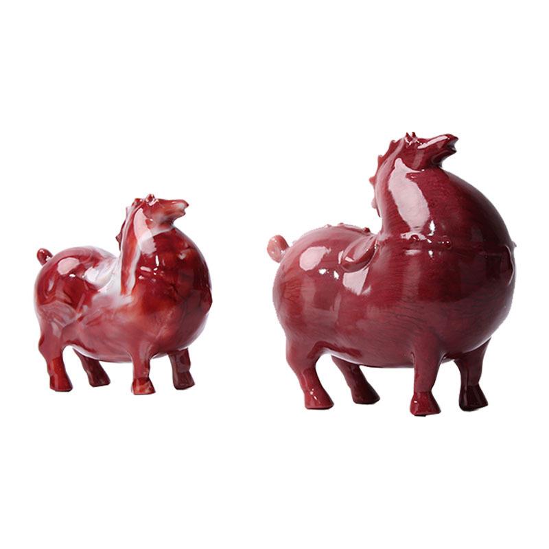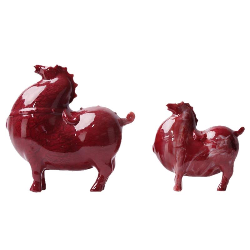创意现代新中式红色树脂抽象唐马摆件书房博古架茶室样板房装饰品